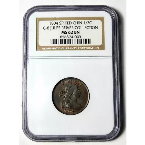 1804 Half Cents Draped Bust 1800 - 08 Copper NGC MS-62 BN C-8 - SPIKED CHIN - JULES REIVER COLLECTION