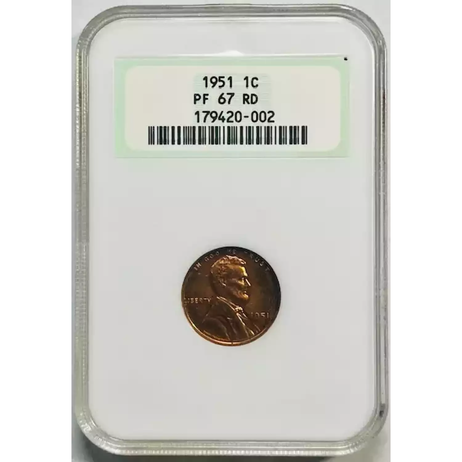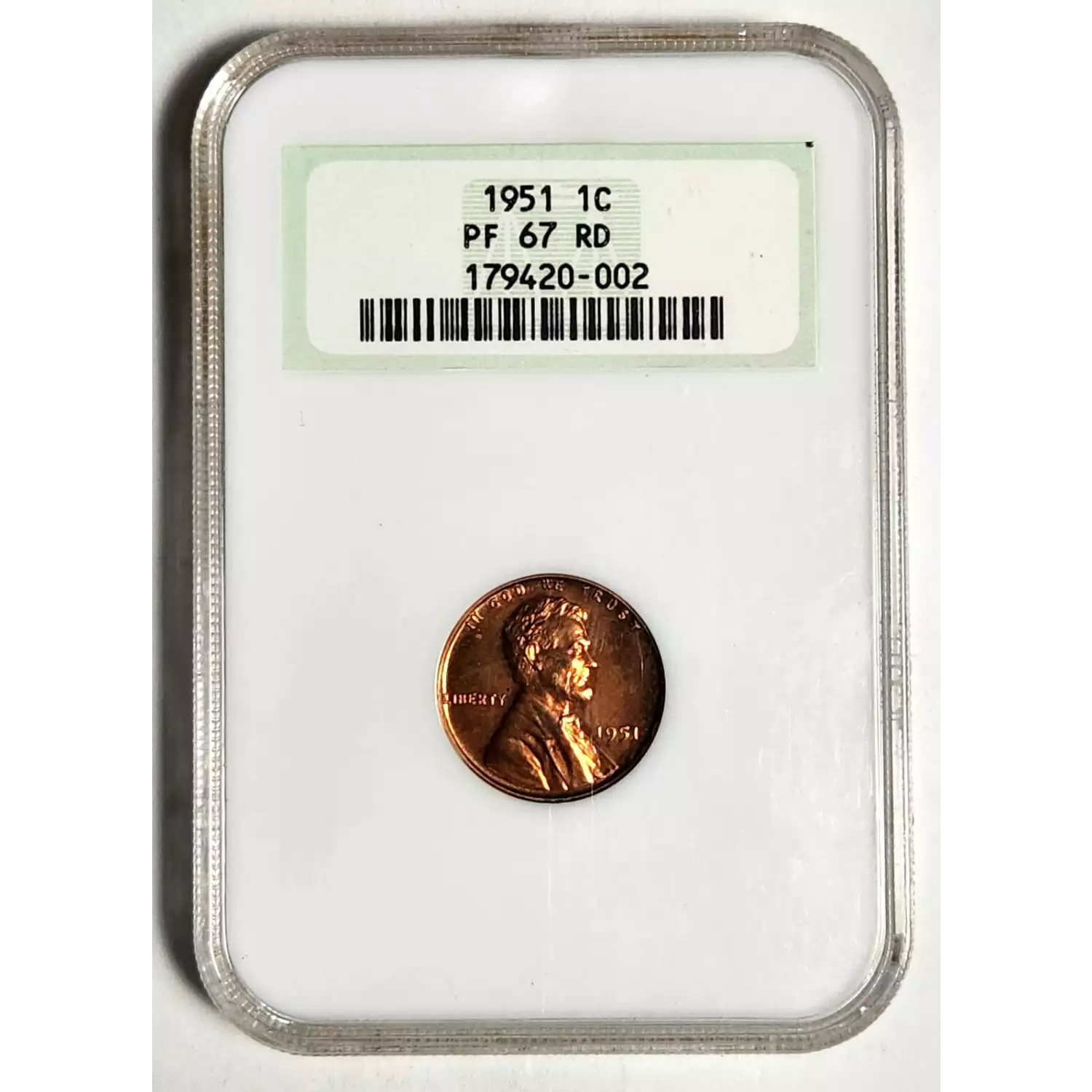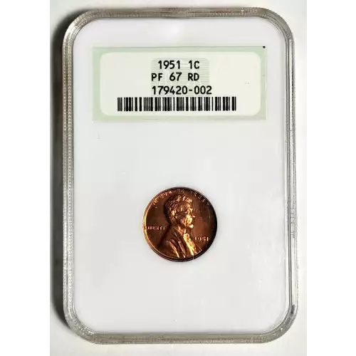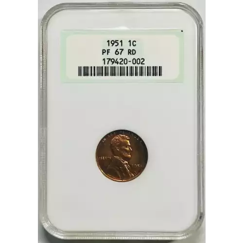 1951 Small Cents Lincoln, Wheat Ears Reverse NGC PF-67 RD - OLD HOLDER