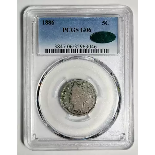 1886 Liberty Head Nickel PCGS G-6 - CAC CAC