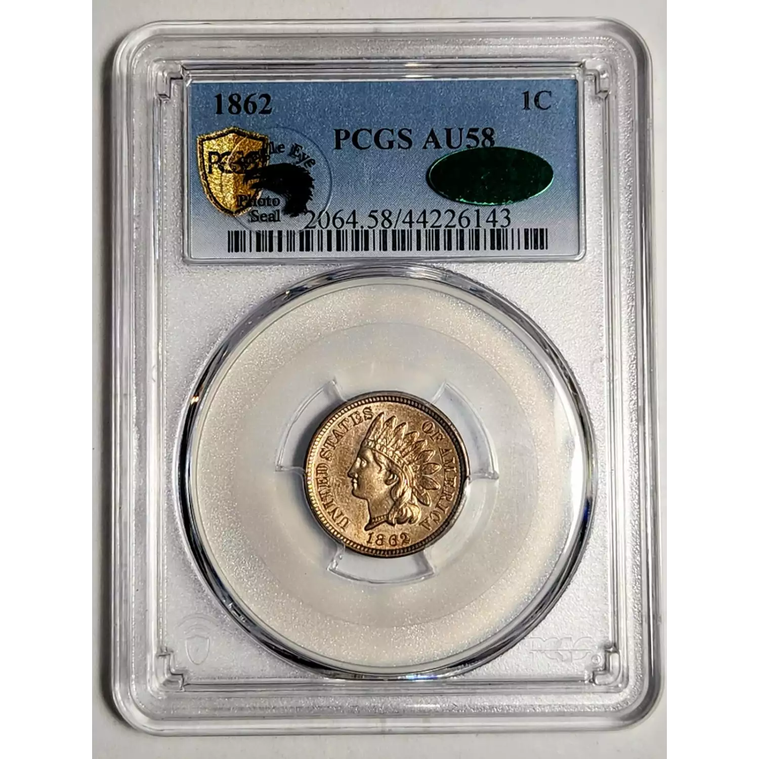 1862 Small Cents Indian Head PCGS AU-58 - CAC CAC