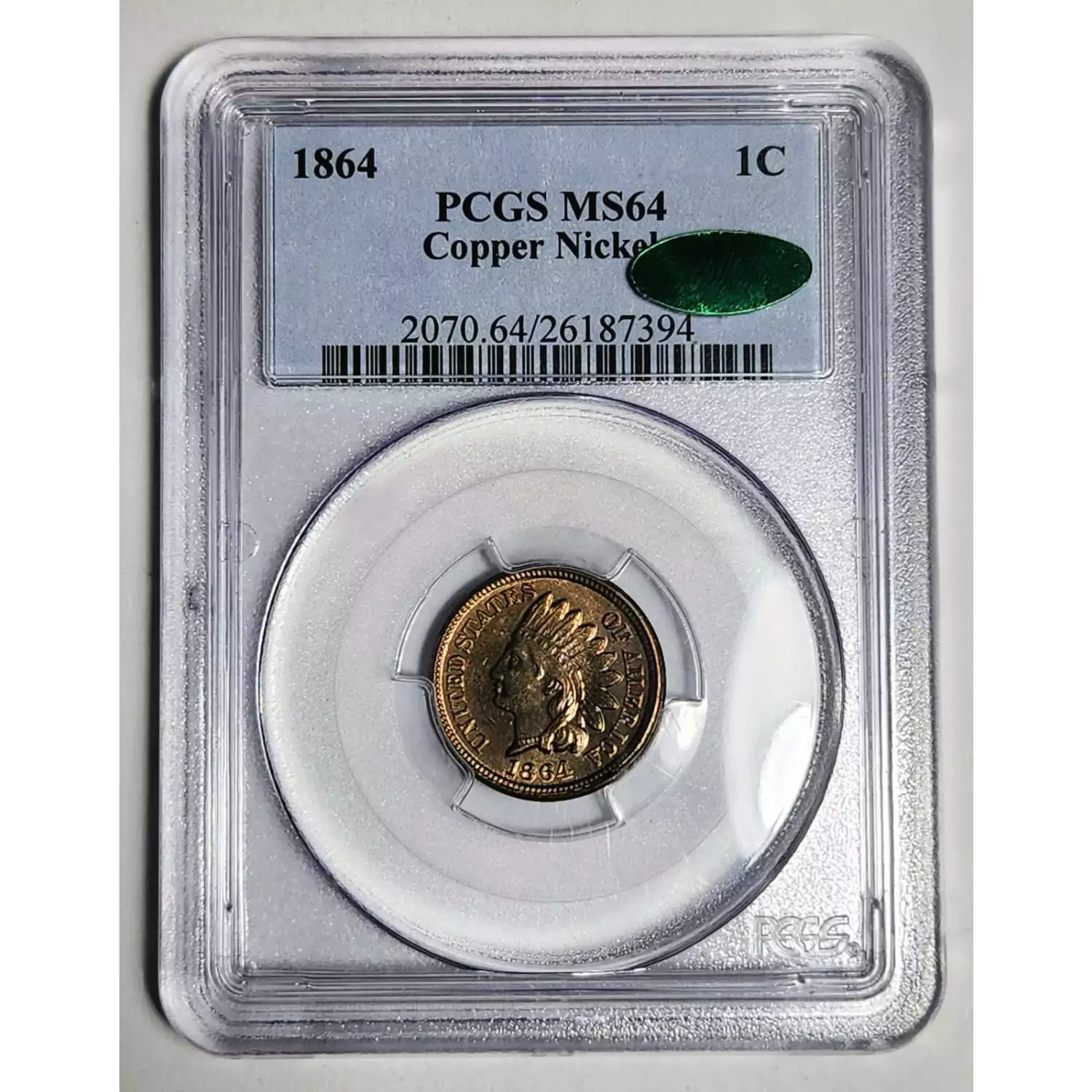 1864 Small Cents Indian Head PCGS MS-64 Copper-Nickel - CAC CAC