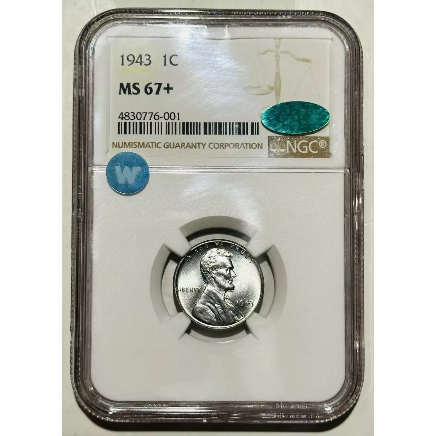 1943 Small Cents Lincoln, Wheat Ears Reverse NGC MS-67+ CAC, Sight White