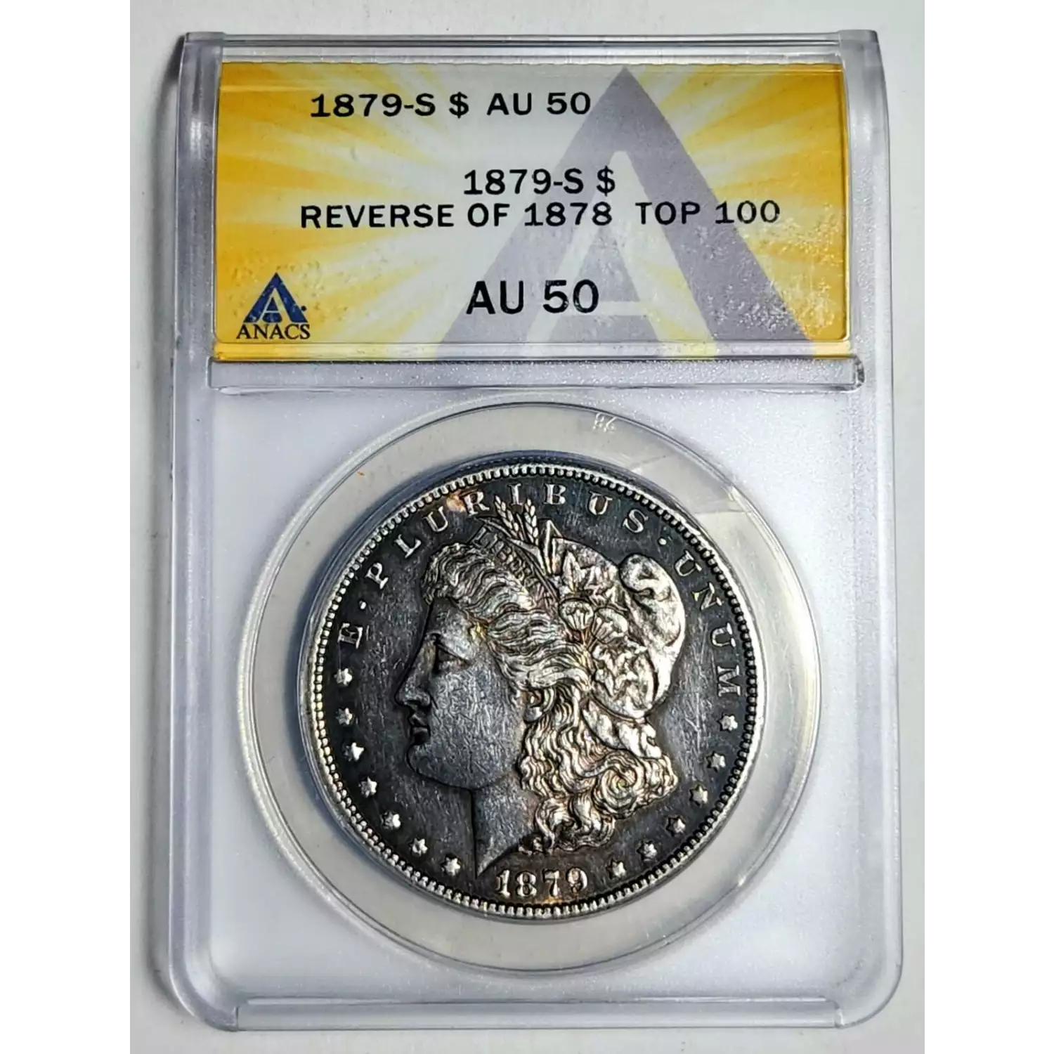 1879-S Morgan Silver Dollar ANACS AU-50 REVERSE OF 1878 - TOP 100