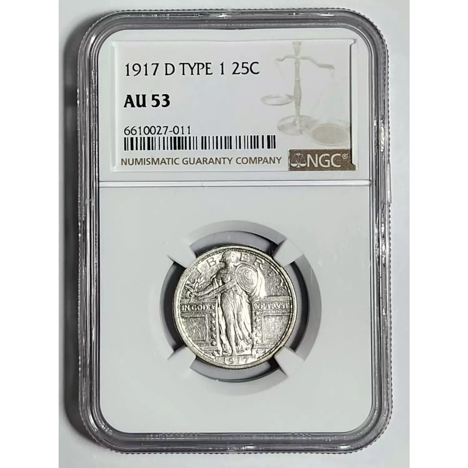 1917-D Standing Liberty Quarter NGC AU-53 D TYPE 1 - WHITE!