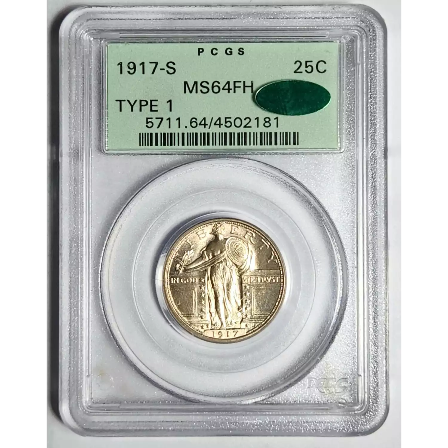 1917-S Standing Liberty Quarter PCGS MS-64 FH Type 1 - OLD GREEN HOLDER - OGH CAC