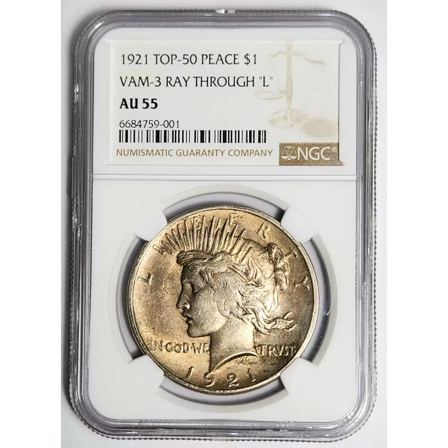 1921 Peace Dollar NGC AU-55 TOP-50 VAM-3 RAY THROUGH "L" - TOP 509