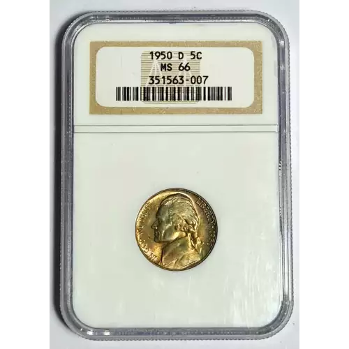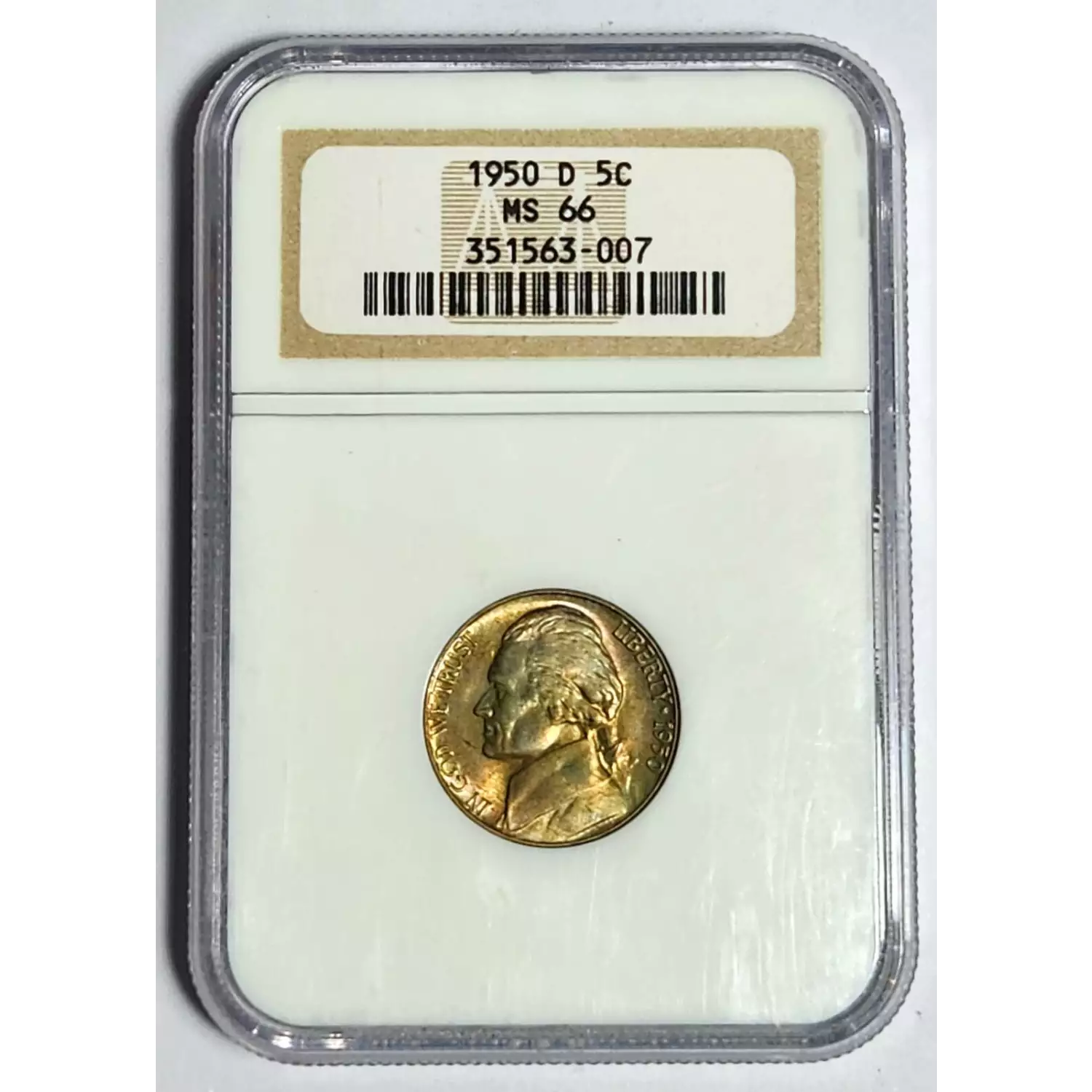 1950-D Nickel Jefferson NGC MS-66 LOTS OF STEPS AND COLORS