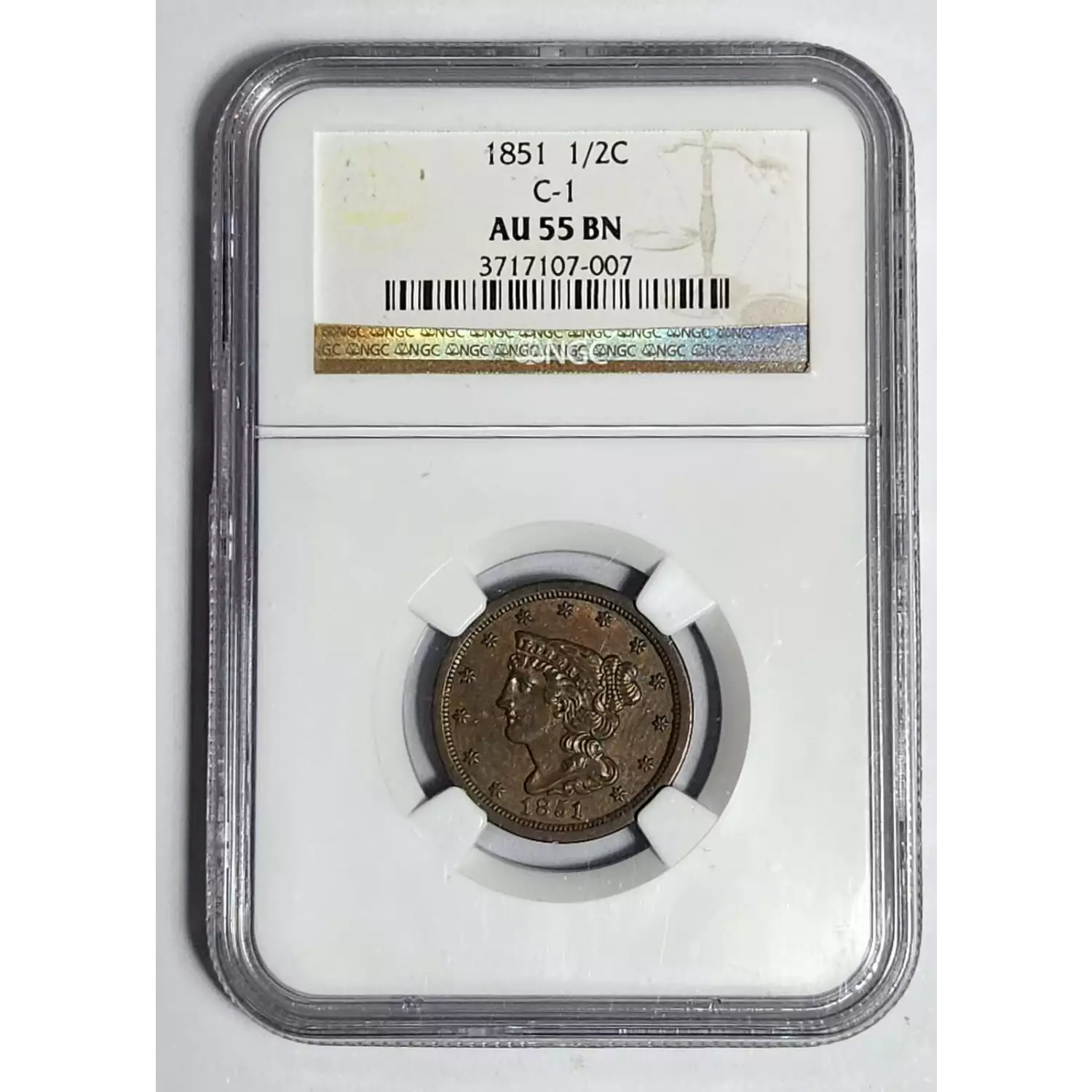 1851 Half Cents Braided Hair NGC AU-55 BN C-1
