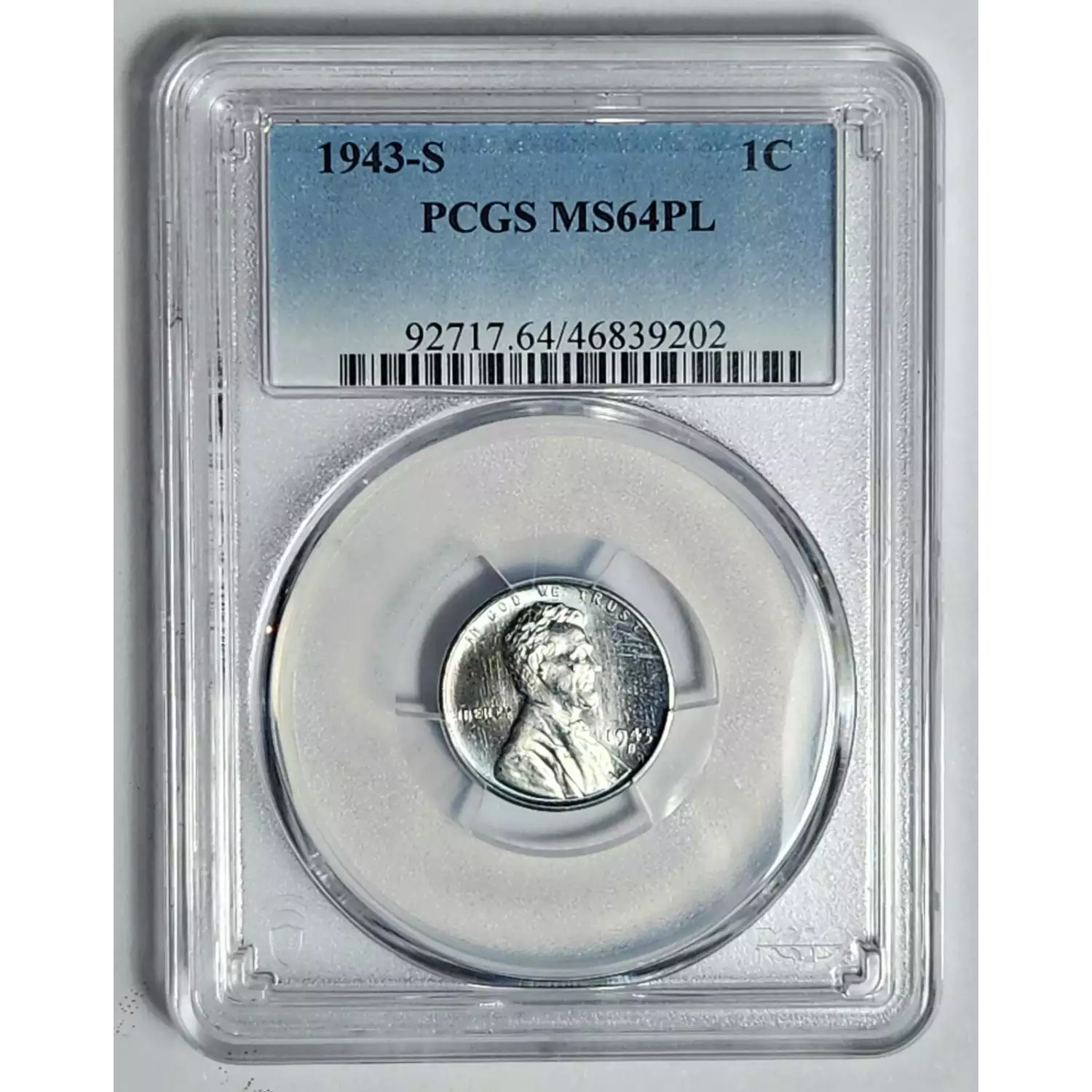 1943 Small Cents Lincoln, Wheat Ears Reverse PCGS MS-64 PL