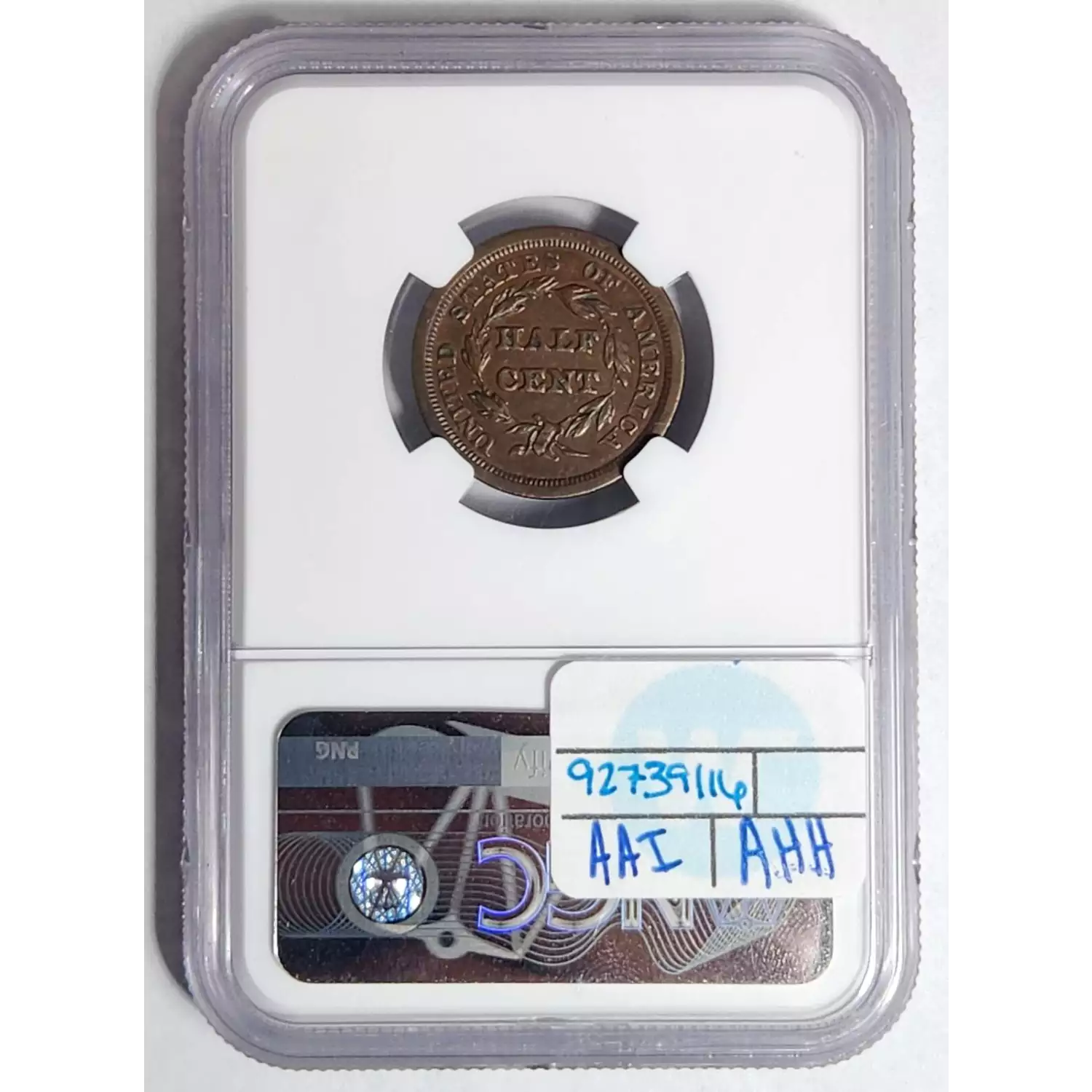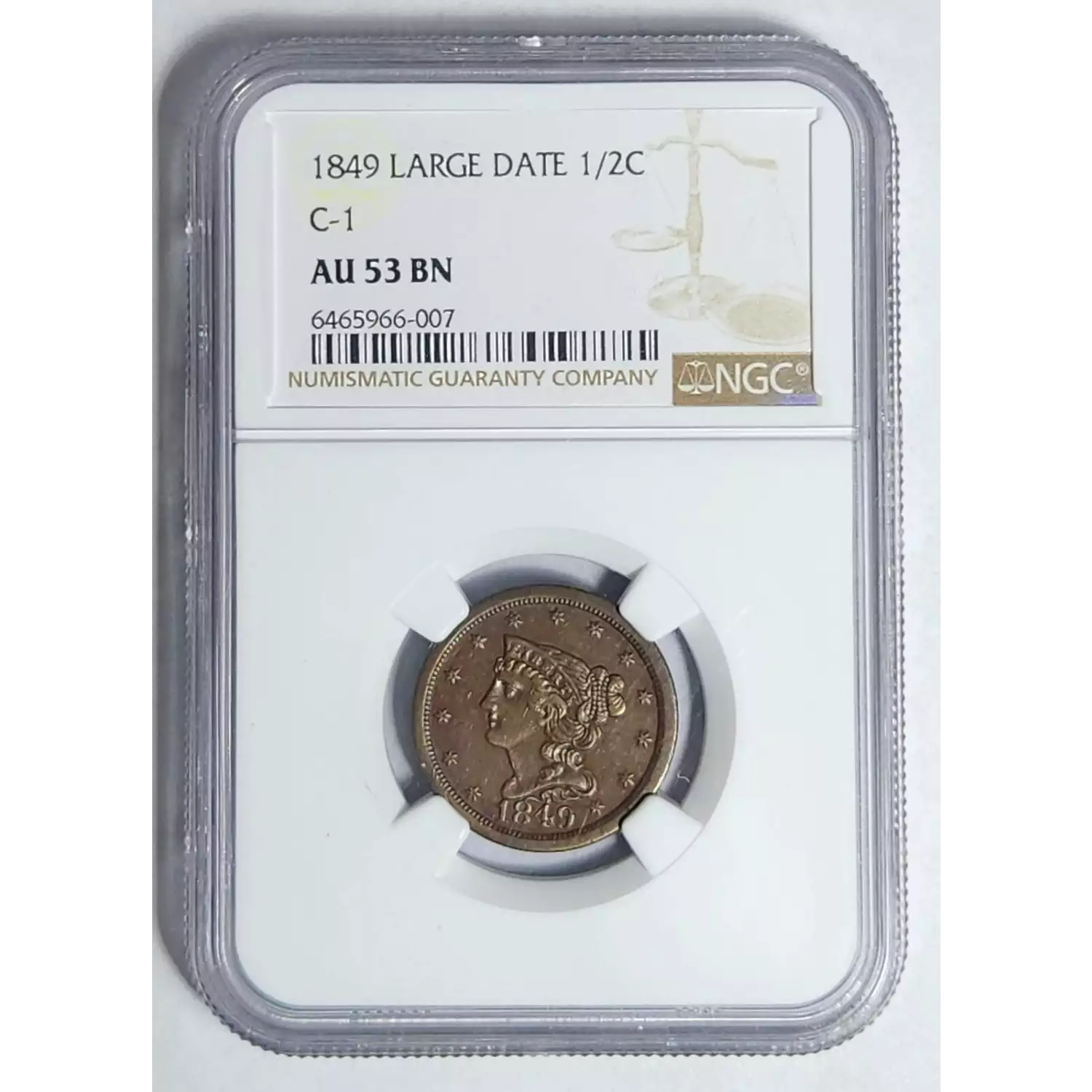 1849 Half Cents Braided Hair NGC AU-53 BN C-1 - LARGE DATE