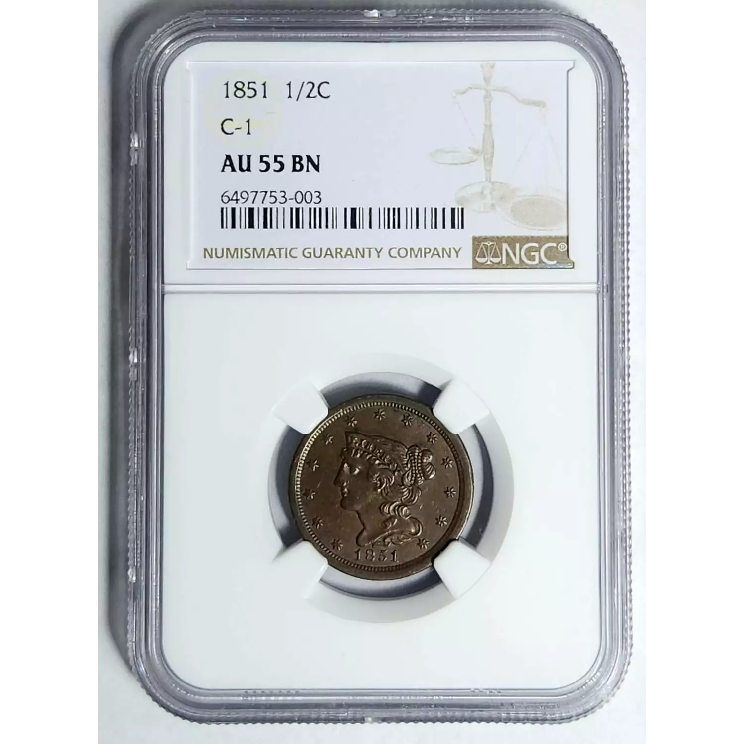 1851 Half Cents Braided Hair NGC AU-55 BN C-1