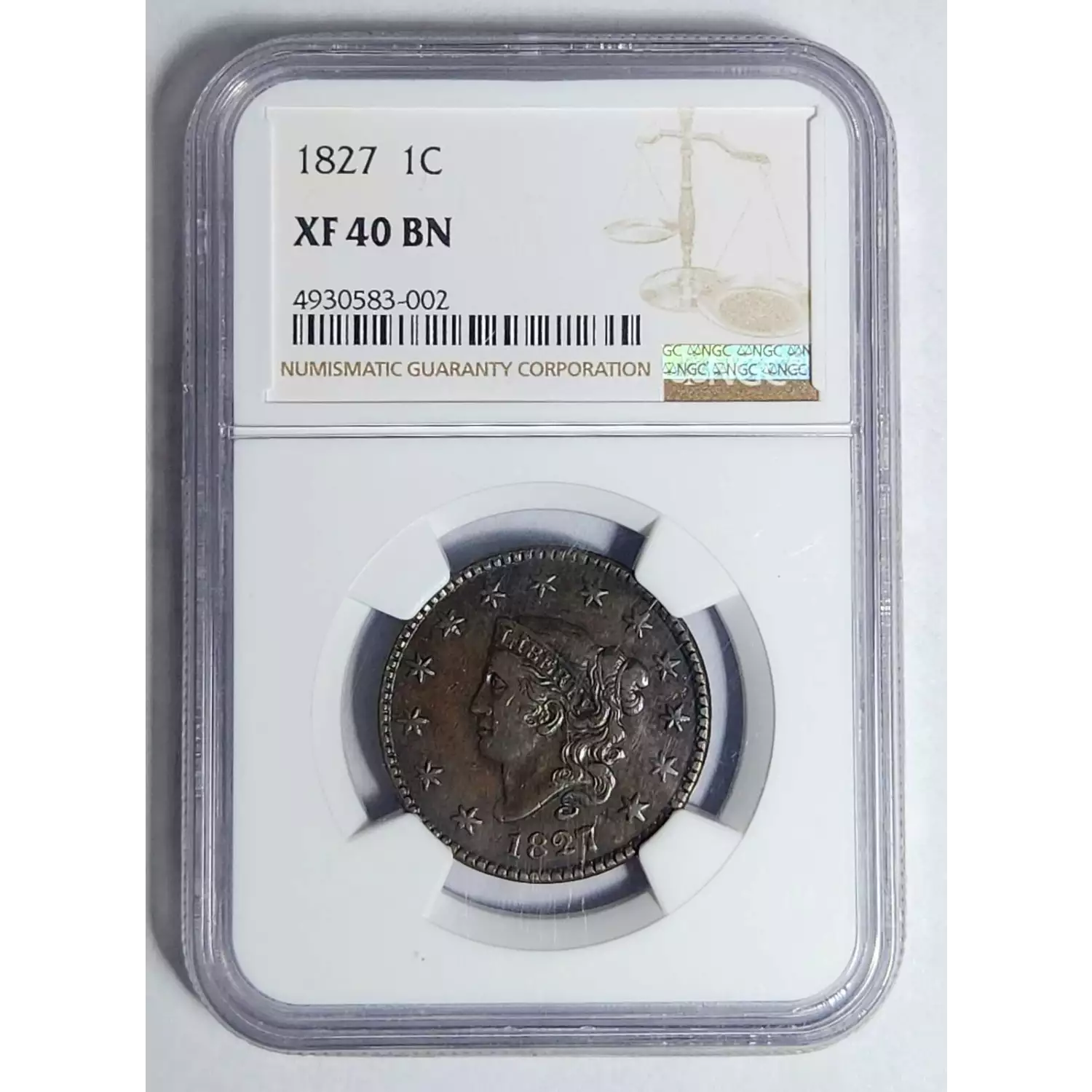 1827 Large Cents Coronet Head NGC XF-40 BN