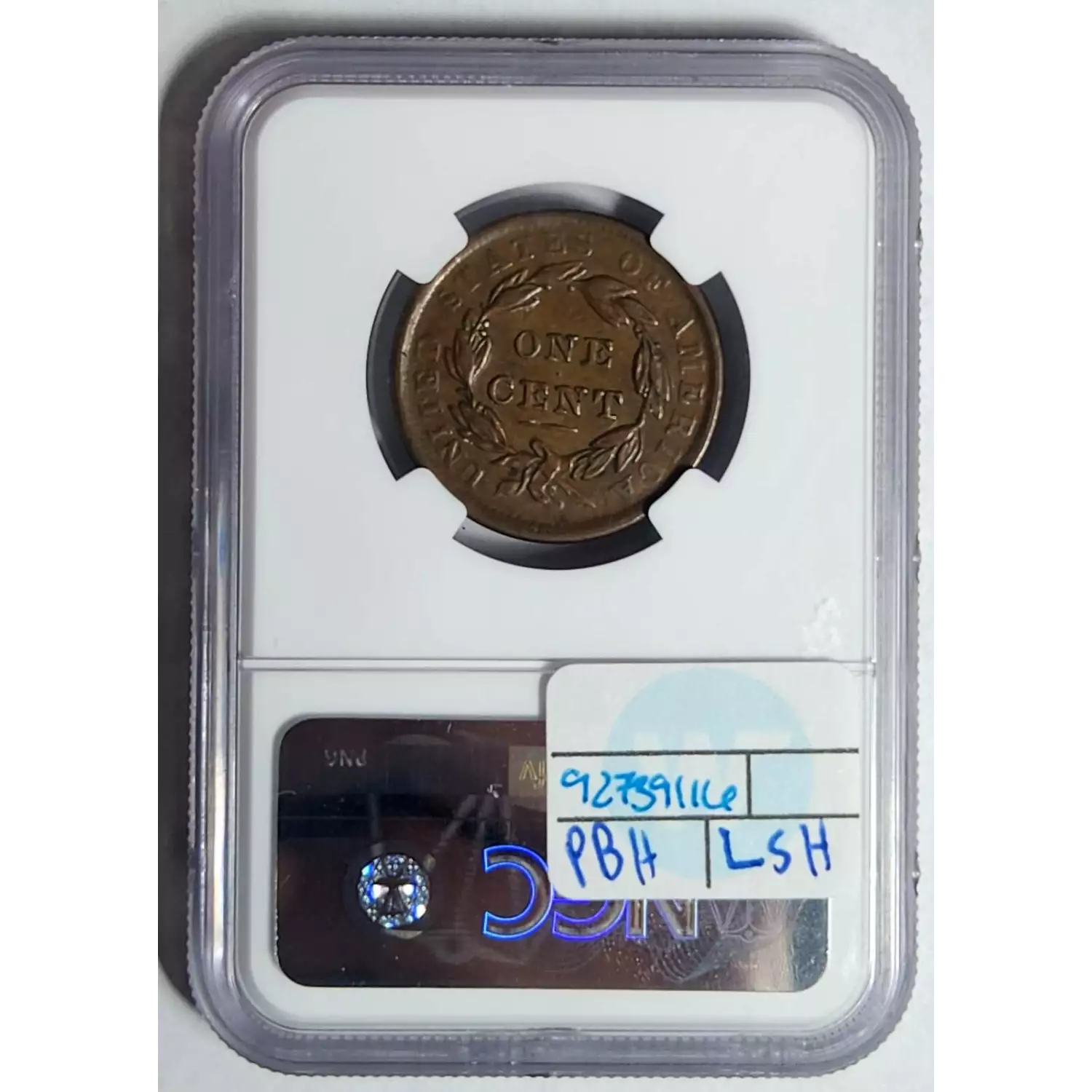 1838 Large Cents Coronet Head NGC AU-53 BN