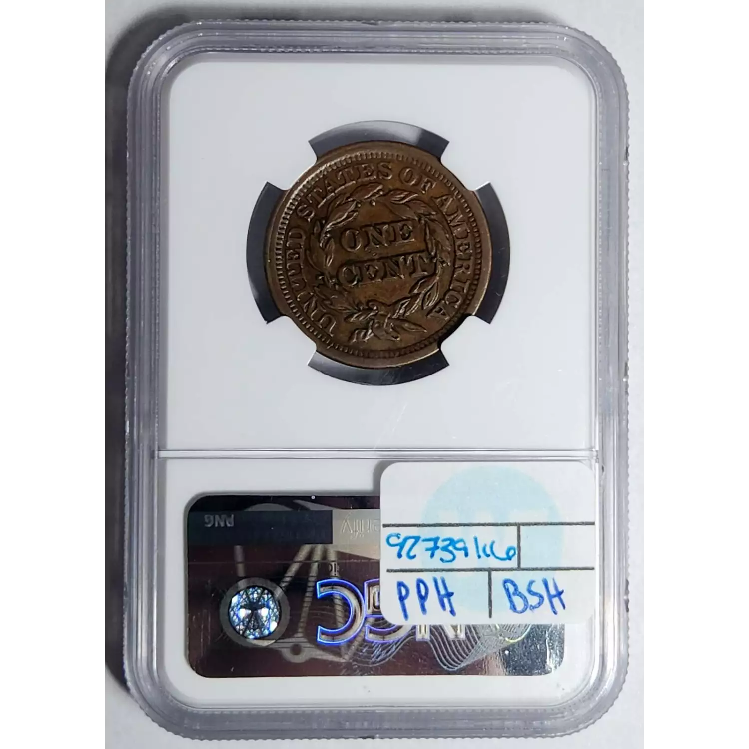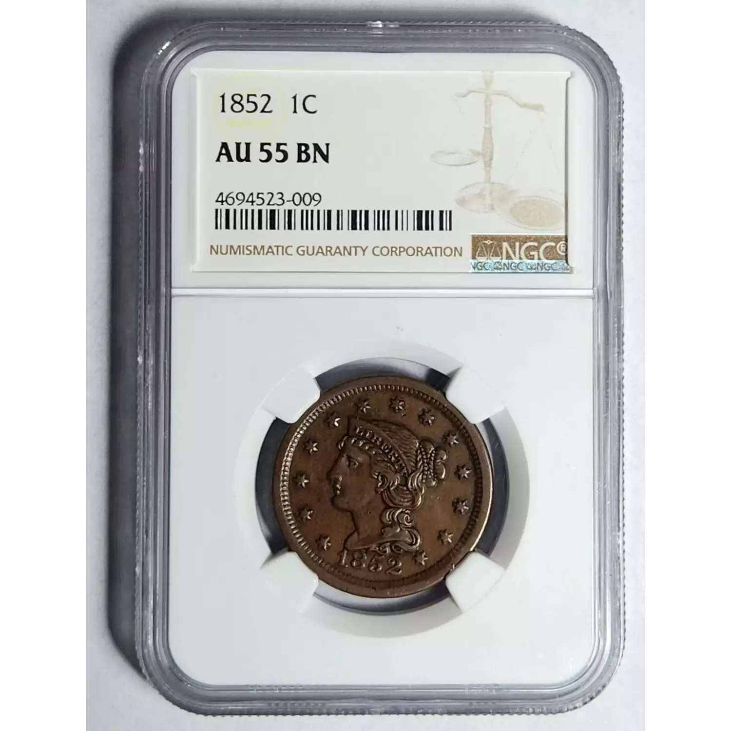 1852 Braided Hair Cent NGC AU-55 BN