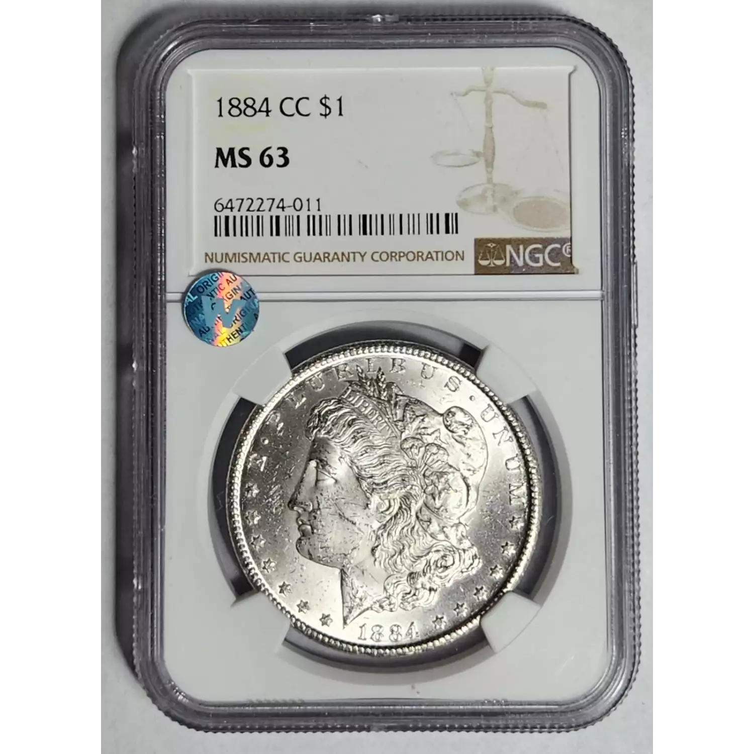 1884-CC Morgan Silver Dollar NGC MS-63 Sight White