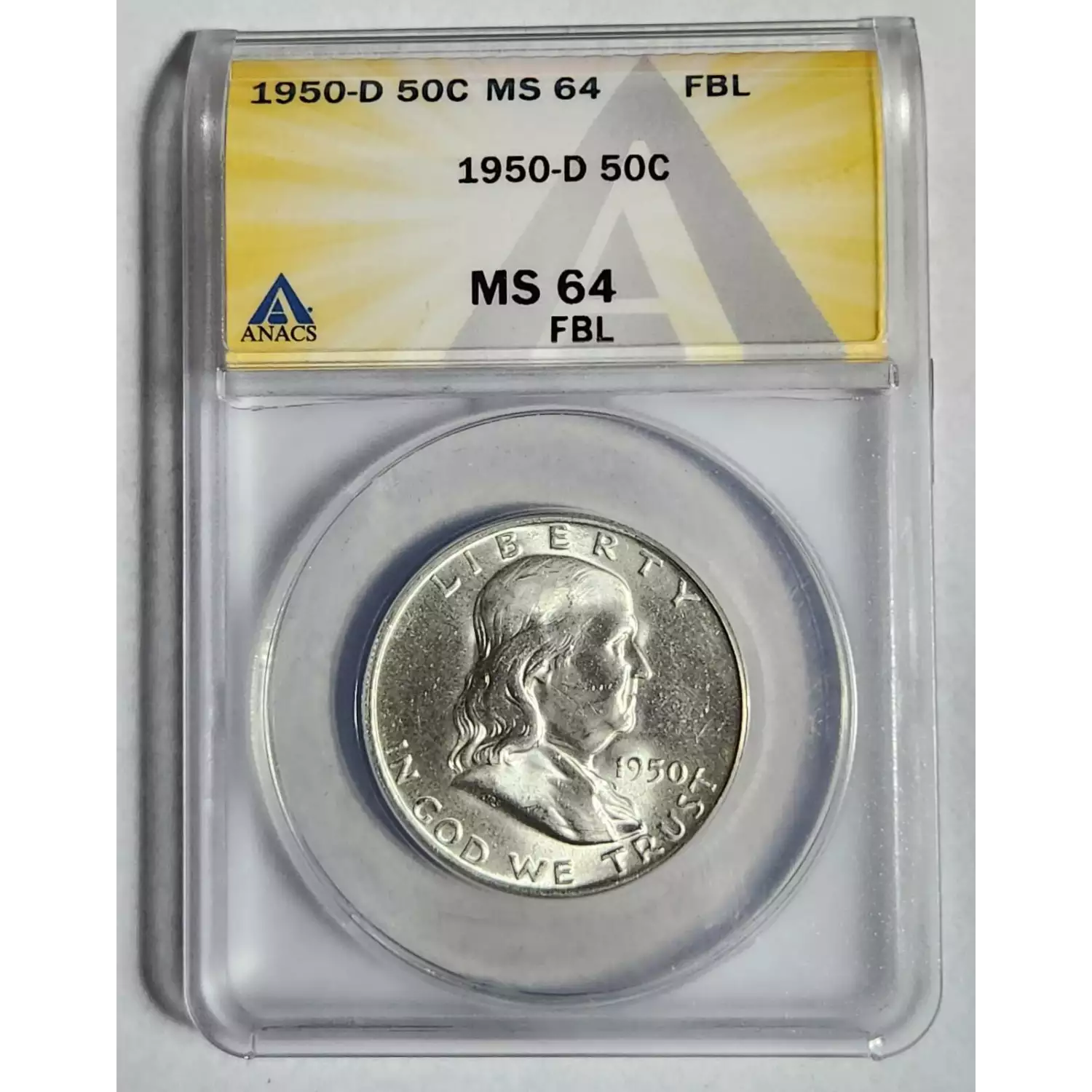 1950-D Franklin Half Dollar ANACS MS-64 FBL - NICE - PQ