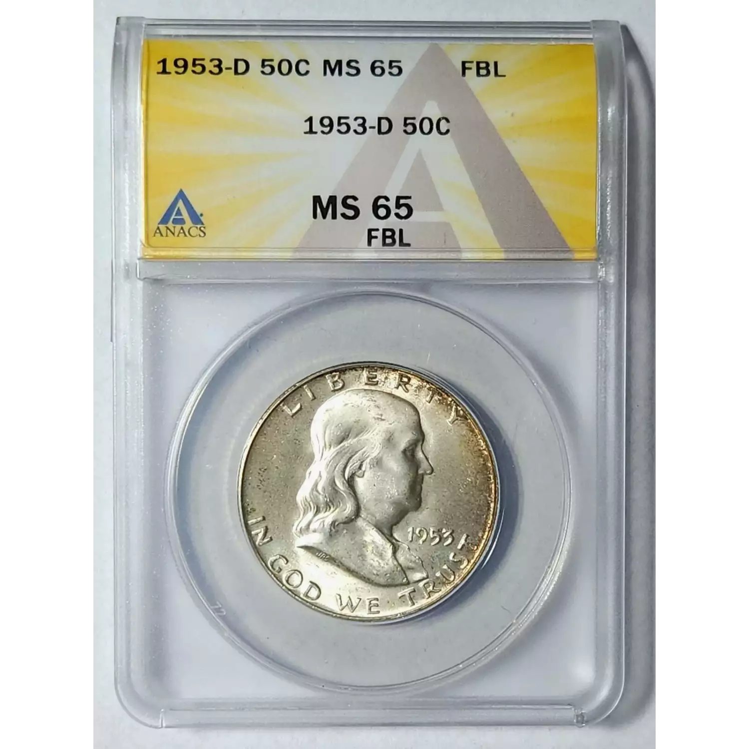 1953-D Franklin Half Dollar ANACS MS-65 FBL - PQ