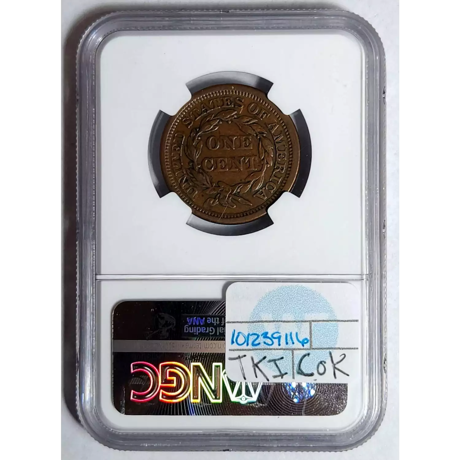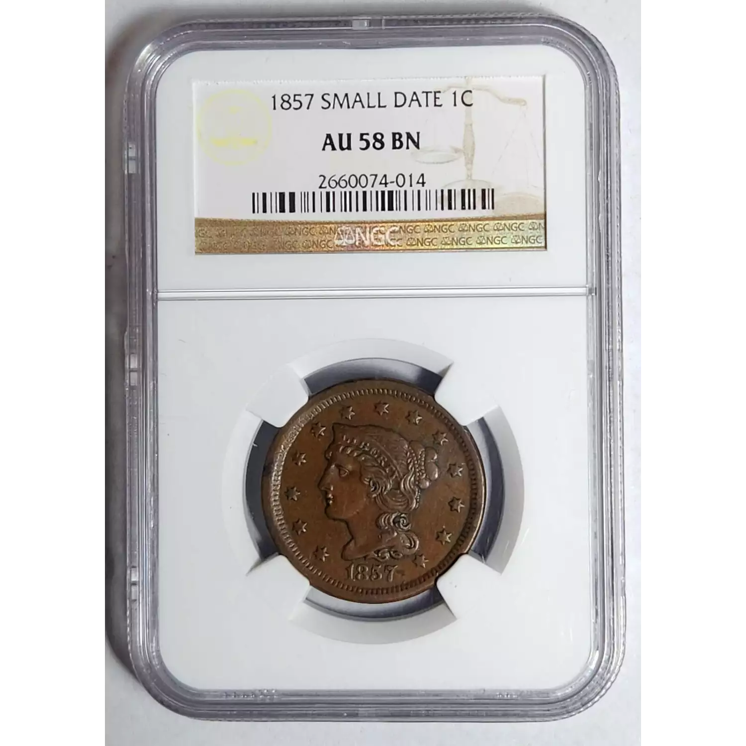 1857 Braided Hair Cent NGC AU-58 BN - SMALL DATE