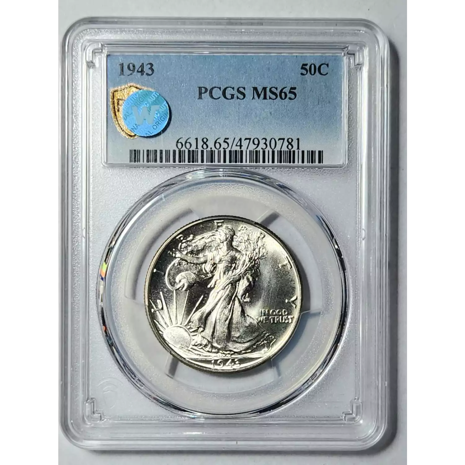 1943 Walking Liberty Half Dollar PCGS MS-65 Sight White