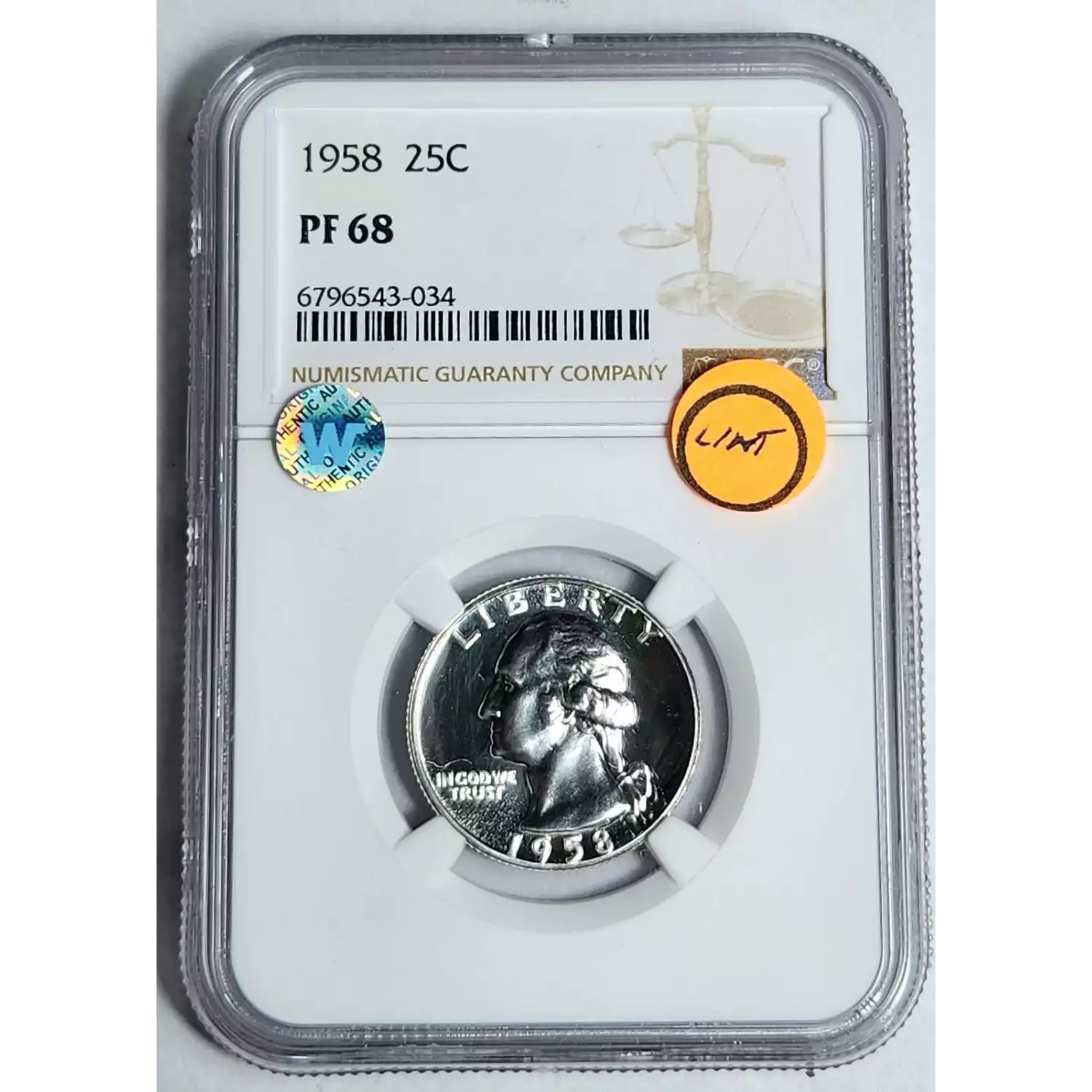 1958 Washington Quarter NGC PF-68 - LINT ERROR Sight White