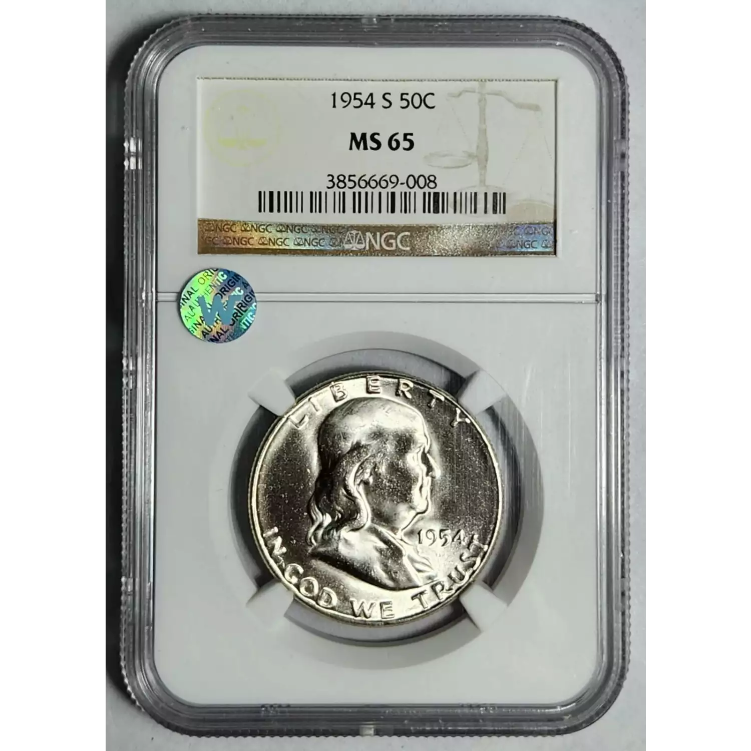 1954-S Franklin Half Dollar NGC MS-65 Sight White