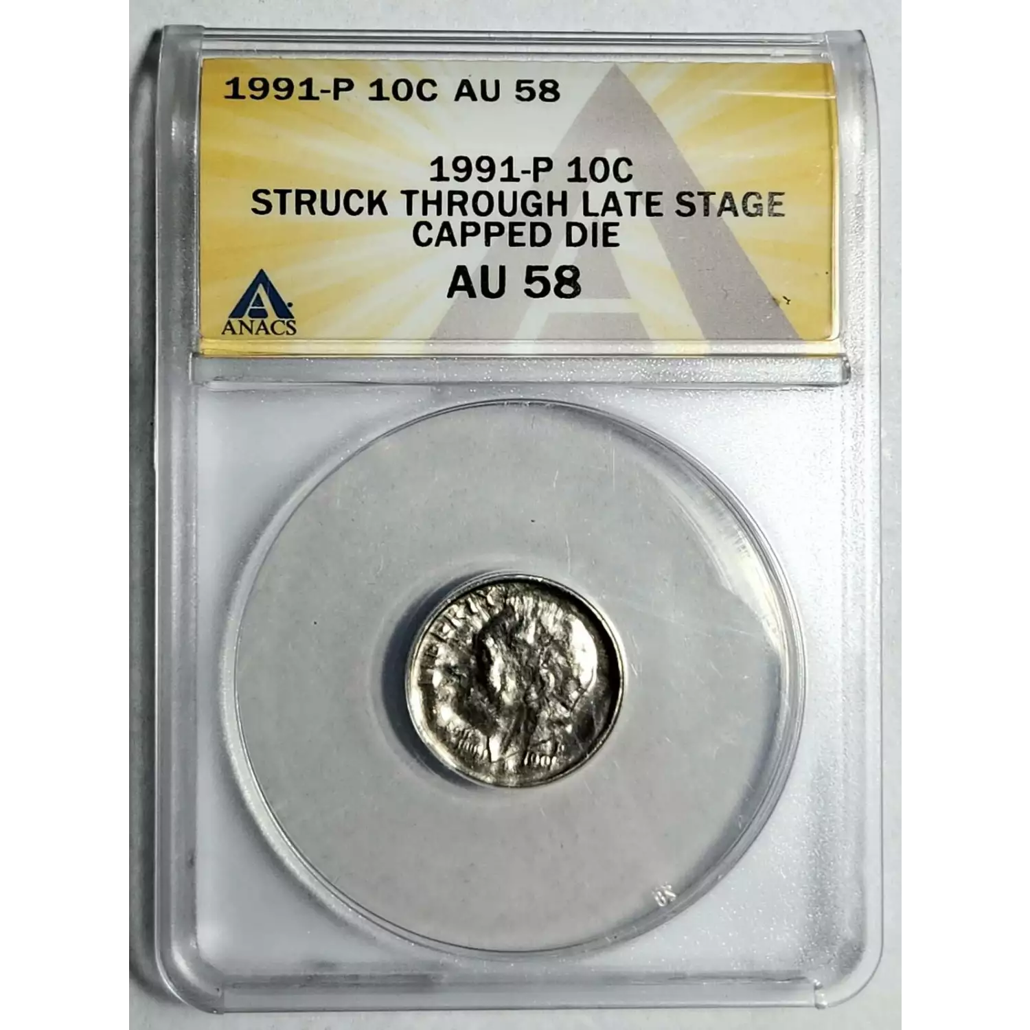 1991 Dimes Roosevelt ANACS AU-58 STRUCK THROUGH LATE STAGE CAPPED DIE