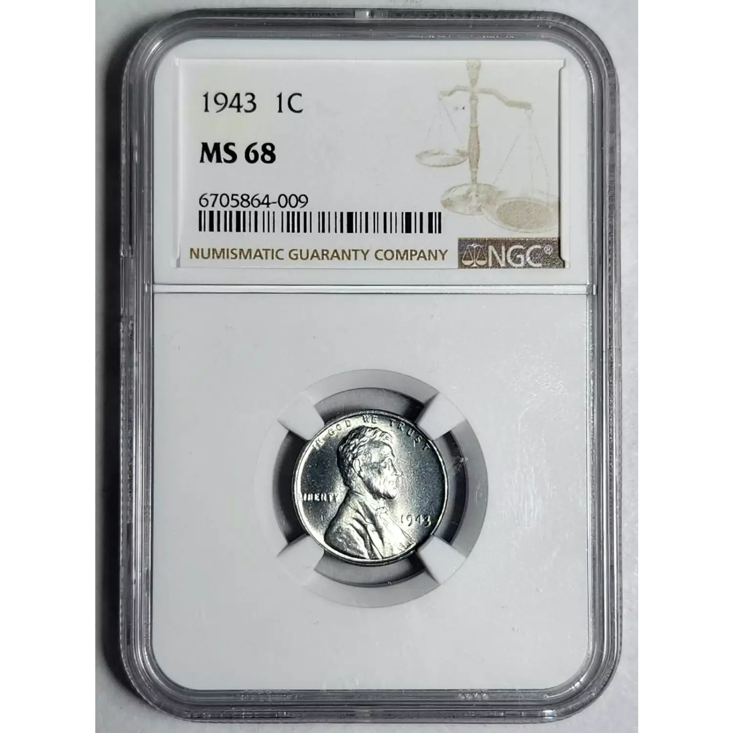1943 Small Cents Lincoln, Wheat Ears Reverse NGC MS-68