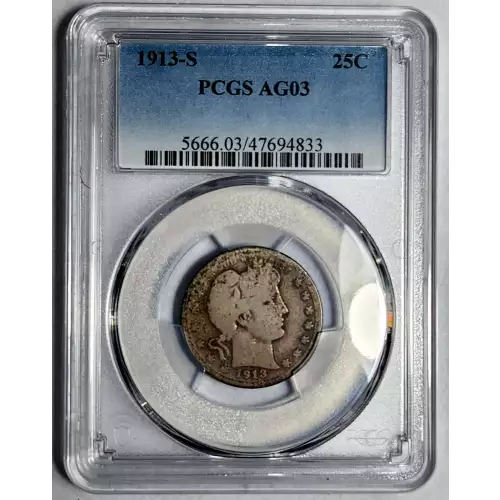1913-S Barber Quarter PCGS AG-3 - RARE DATE!