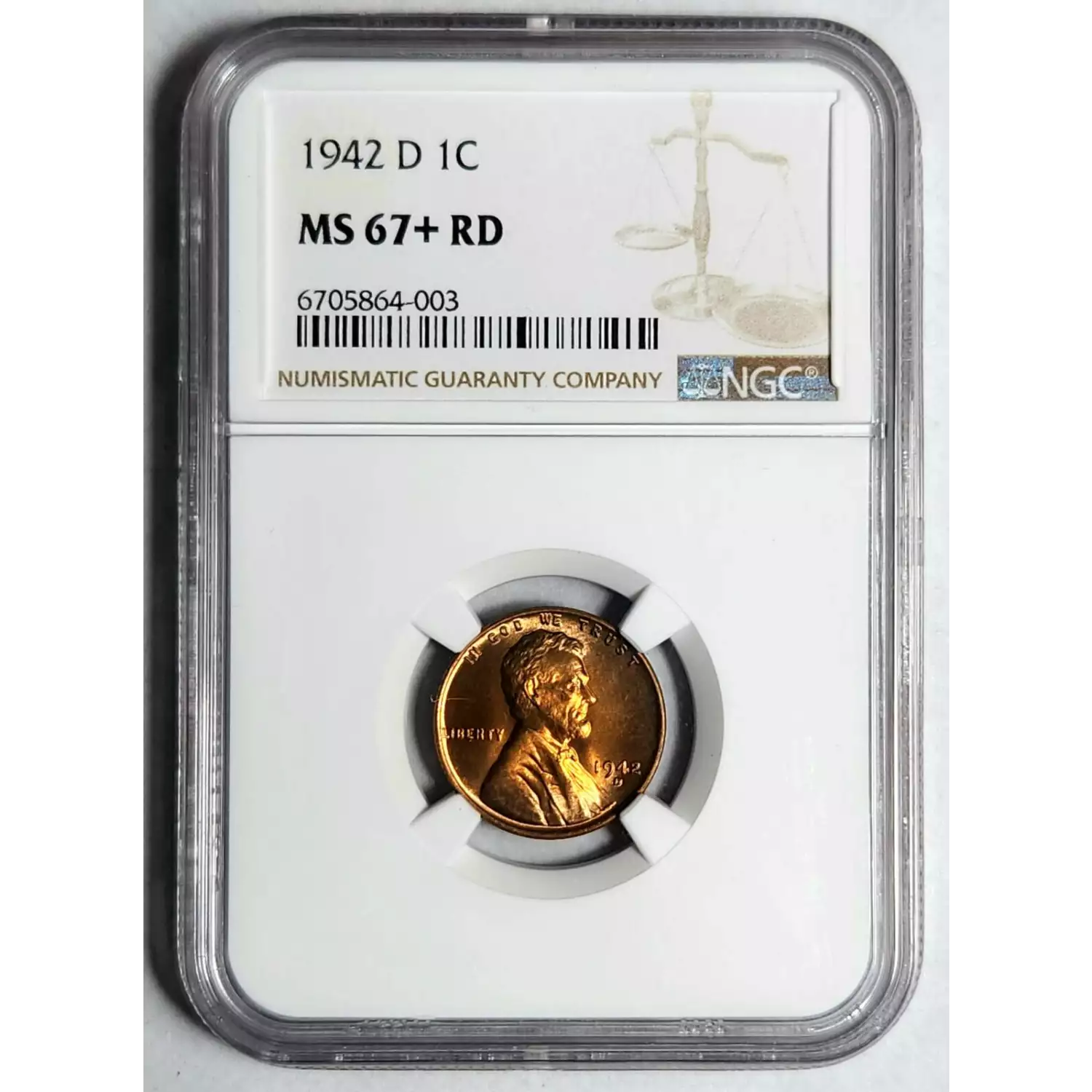 1942-D Small Cents Lincoln, Wheat Ears Reverse NGC MS-67+ RD