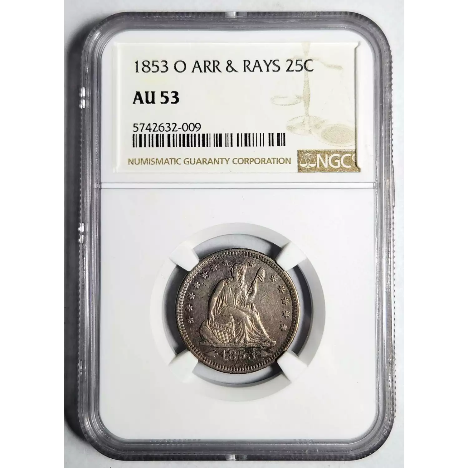 1853-O Seated Liberty Quarter NGC AU-53 ARROWS AND RAYS