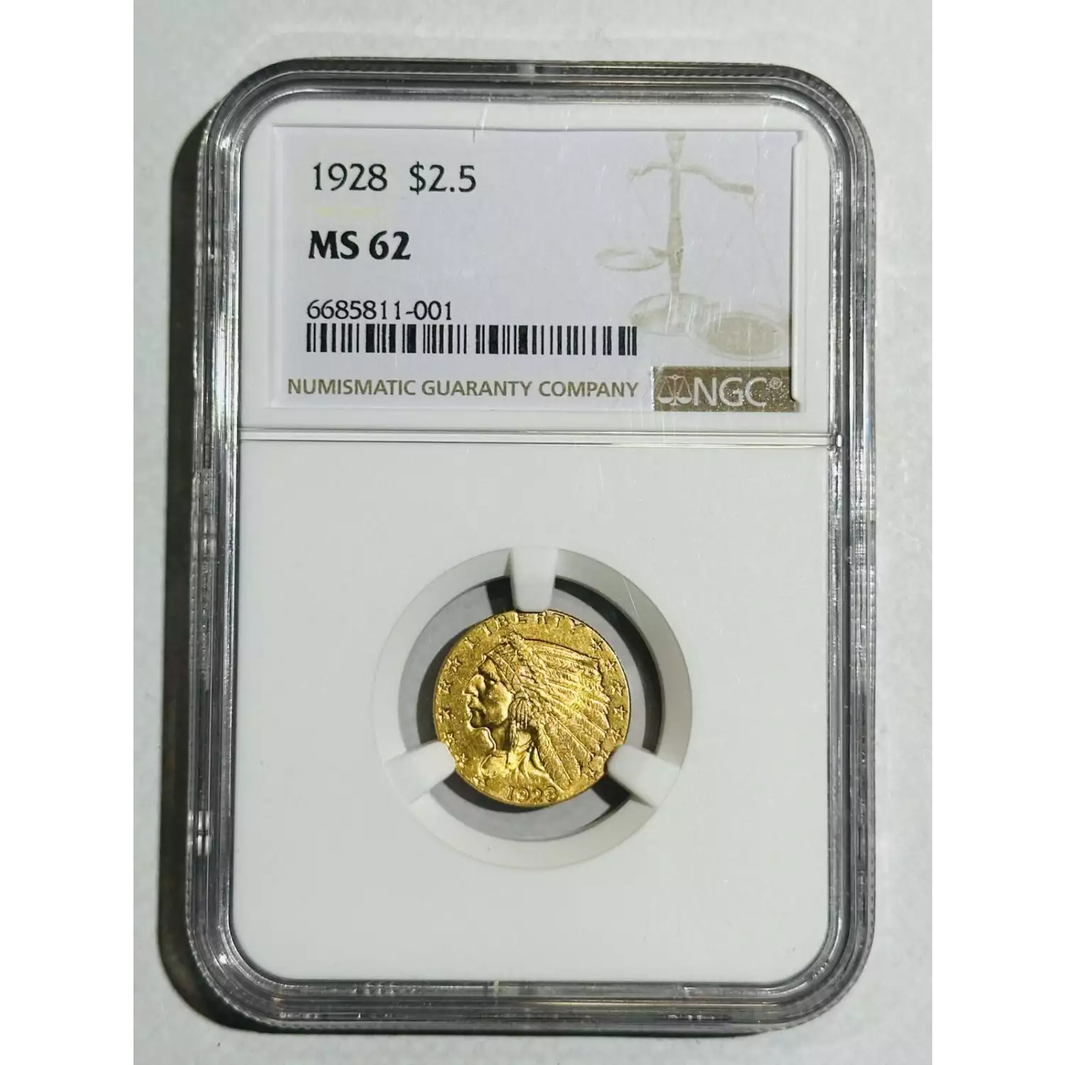 1928 Gold Quarter Eagles $2 1/2 Indian Head NGC MS-62