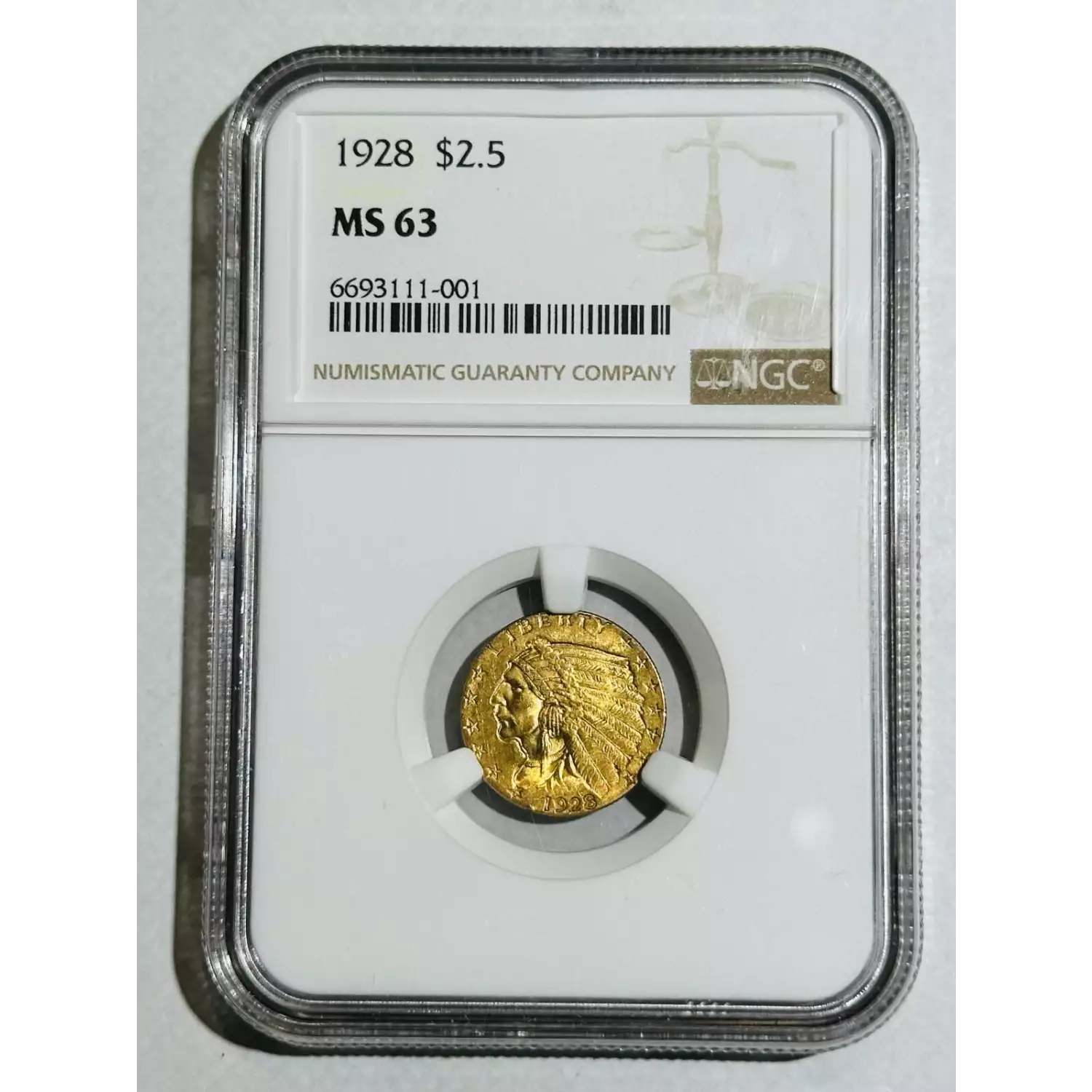 1928 Gold Quarter Eagles $2 1/2 Indian Head NGC MS-63