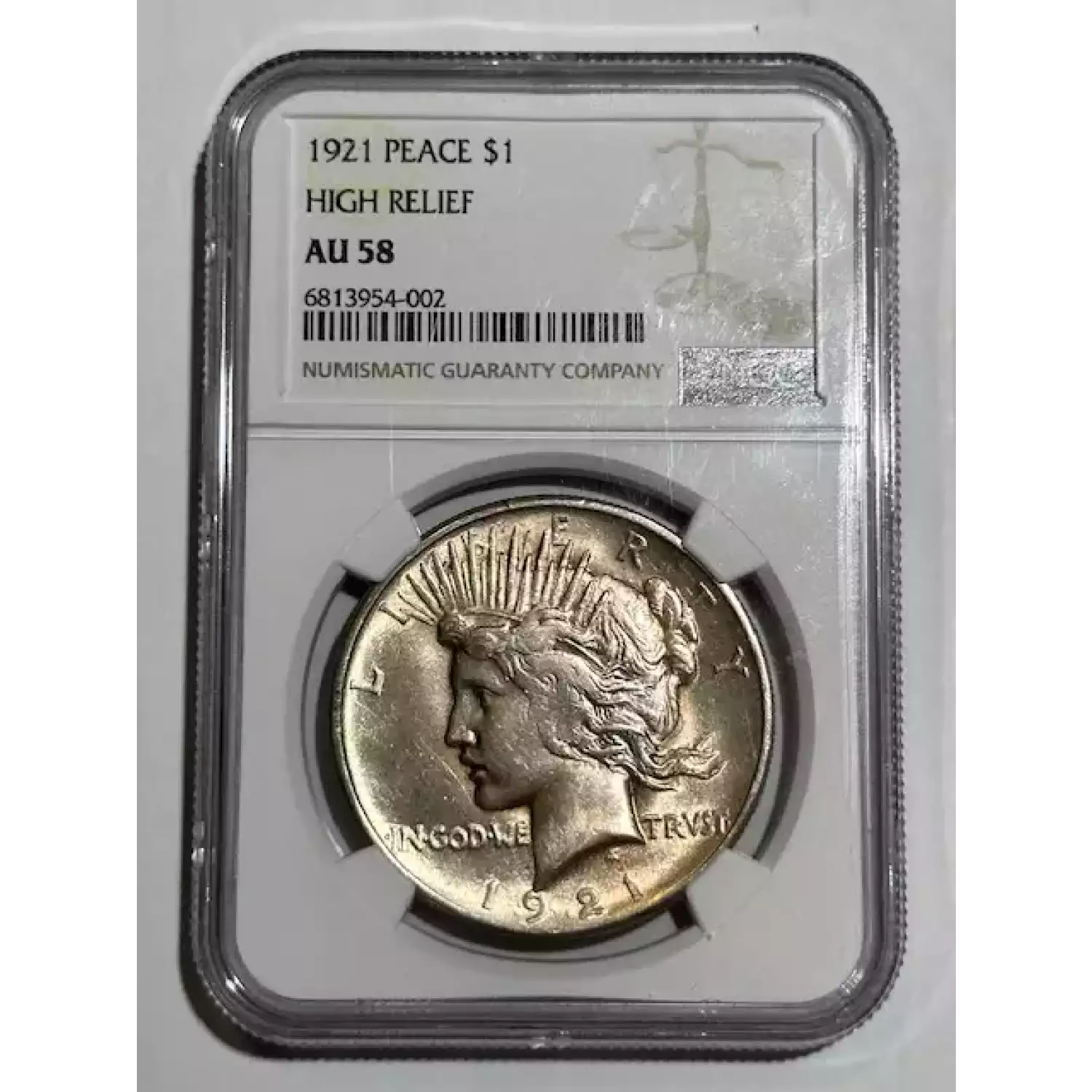 1921 Peace Dollar NGC AU-58 HIGH RELIEF