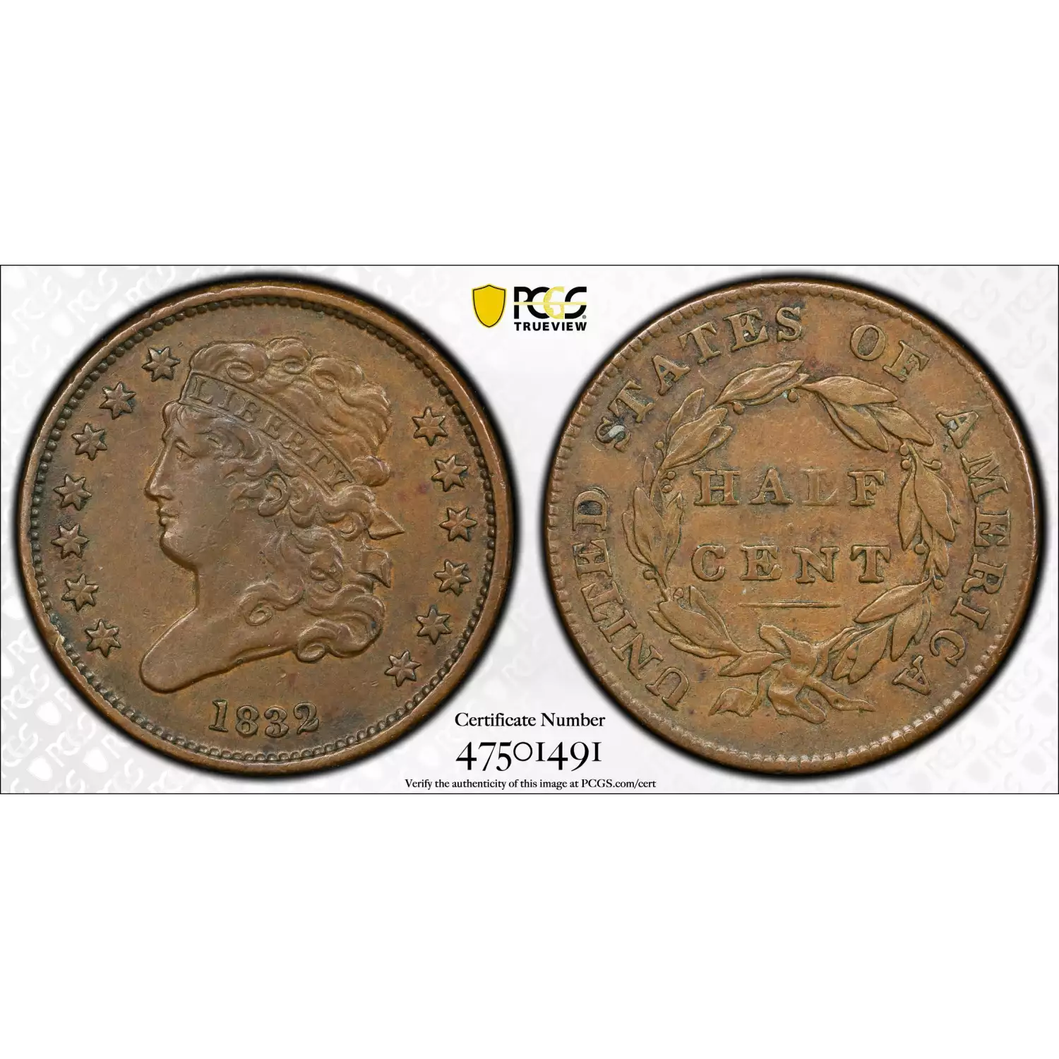 1832 Half Cent Classic Head PCGS XF-45 BN