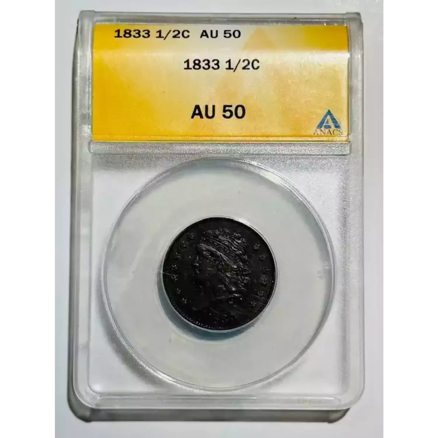 1833 Half Cents Draped Bust 1800 - 08 Copper ANACS AU-50