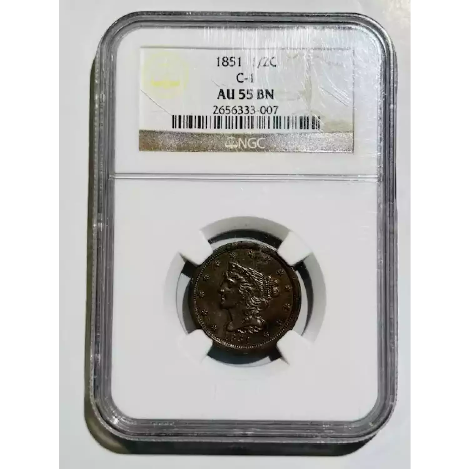1851 Half Cents Braided Hair NGC AU-55 BN C-1