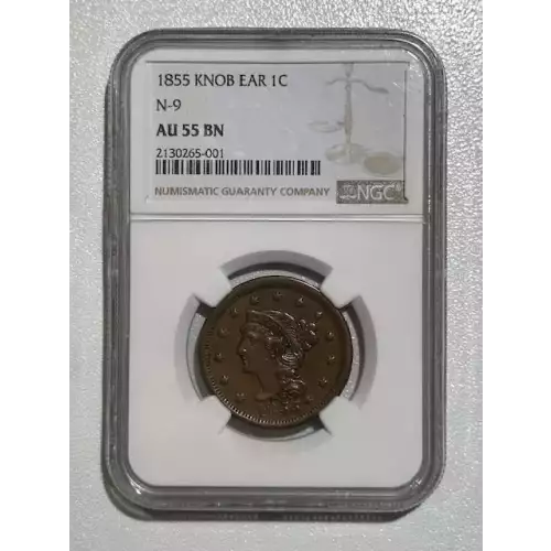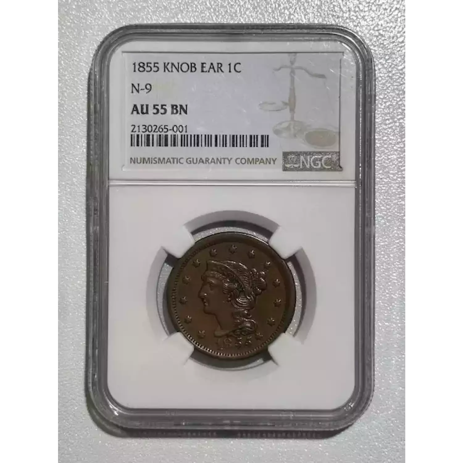 1855 Braided Hair Cent NGC AU-55 BN N-9
