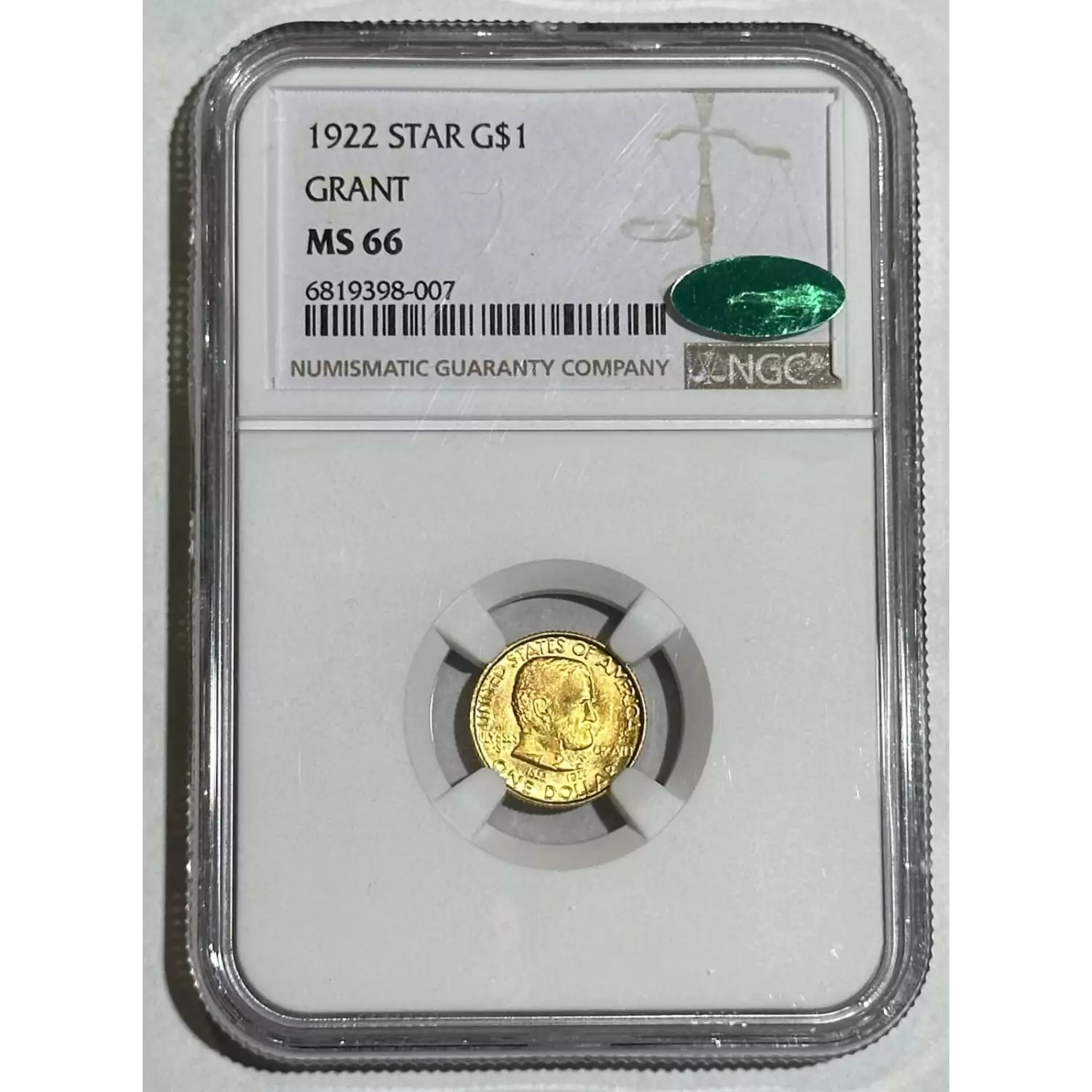 1922 Grant $1 Gold NGC MS-66 GRANT CAC