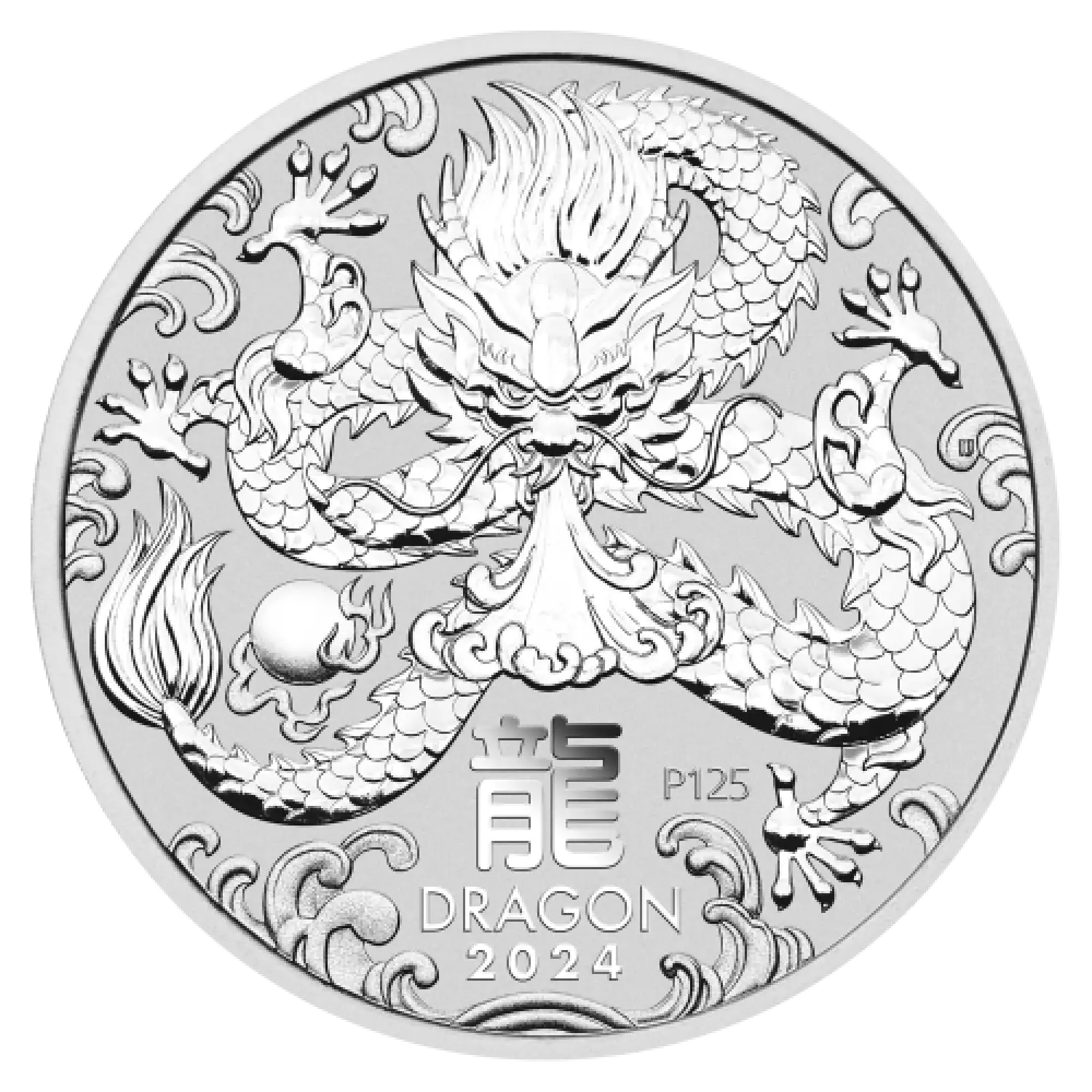 The 2024 2oz Australian Perth Mint Silver Lunar III: Year of the Dragon coins are highly anticipated around the globe. Struck from .999 fine silver, this bullion coin weighs 2 troy ounces.