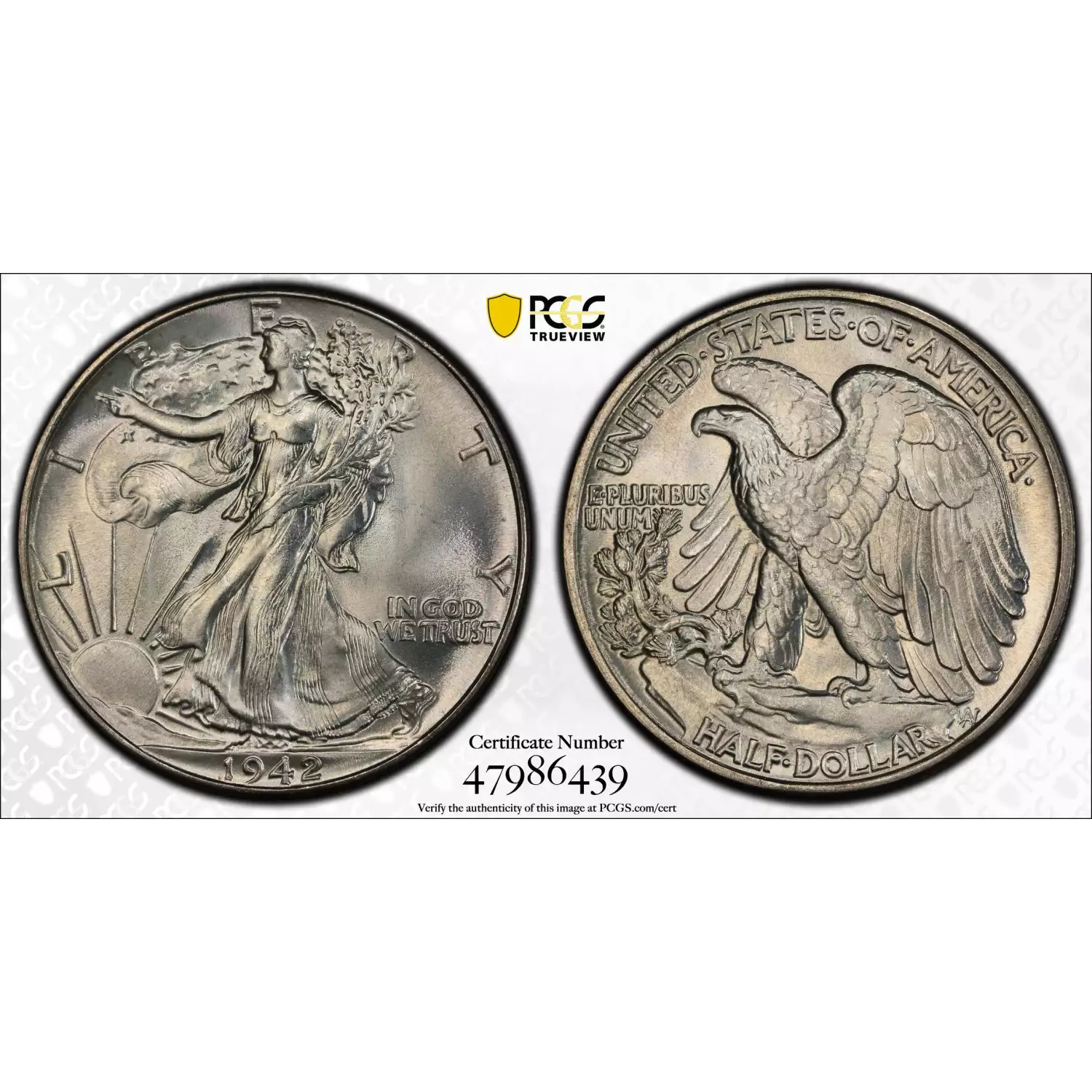 1942 Walking Liberty Half Dollar PCGS MS-67+ CAC