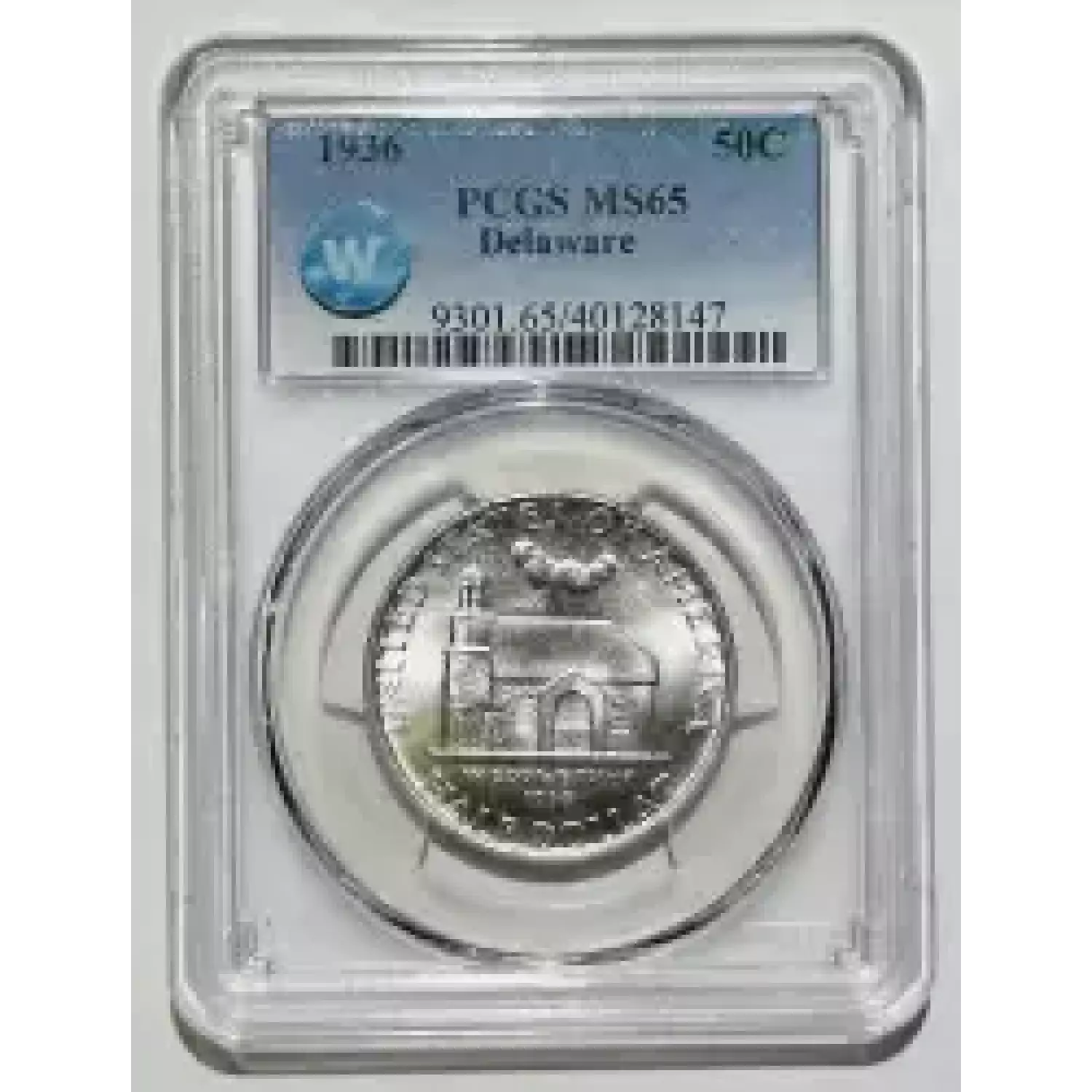 1936 Classic Commemorative Delaware Tercentenary PCGS MS-65 Delaware Sight White