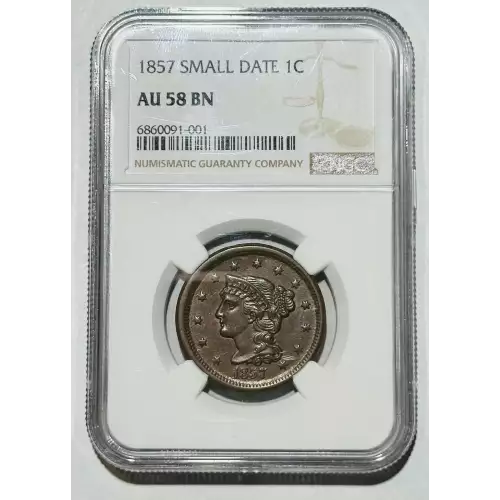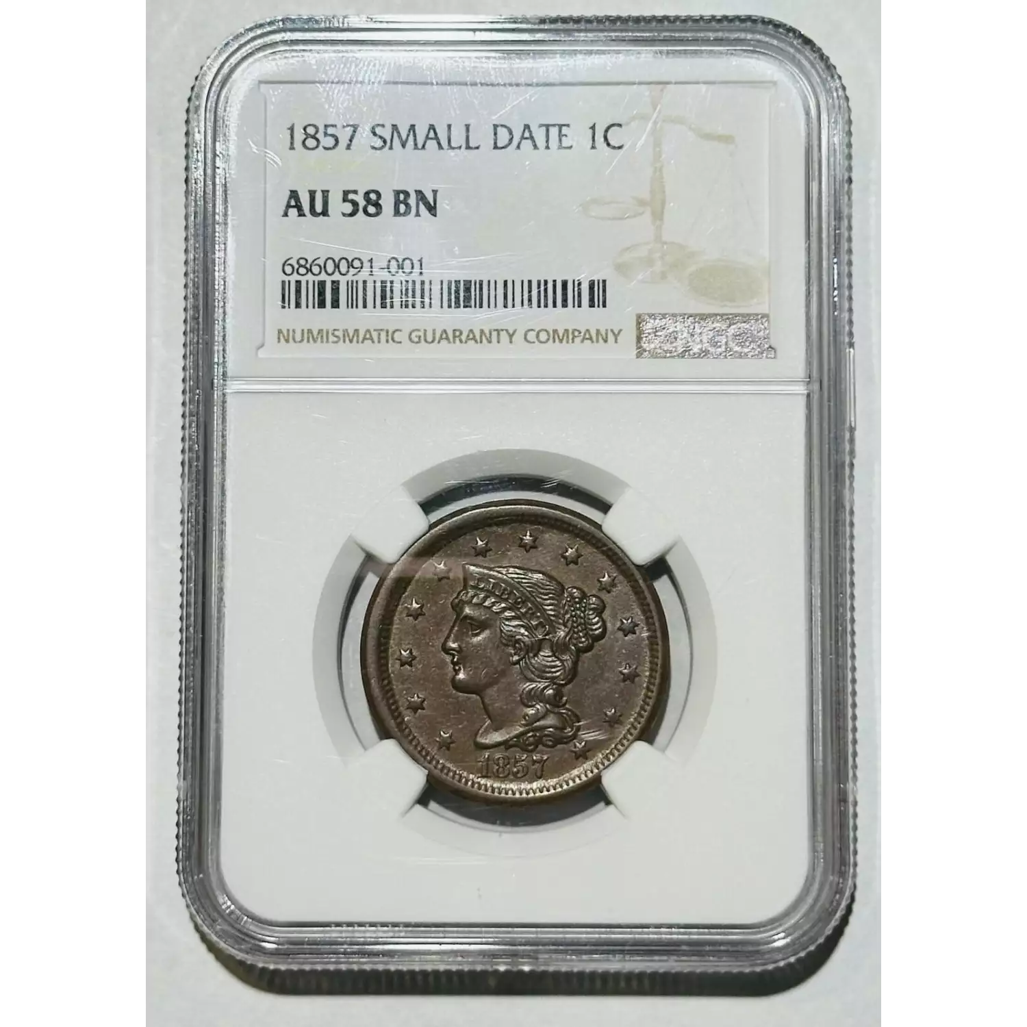 1857 Braided Hair Cent NGC AU-58 BN SMALL DATE