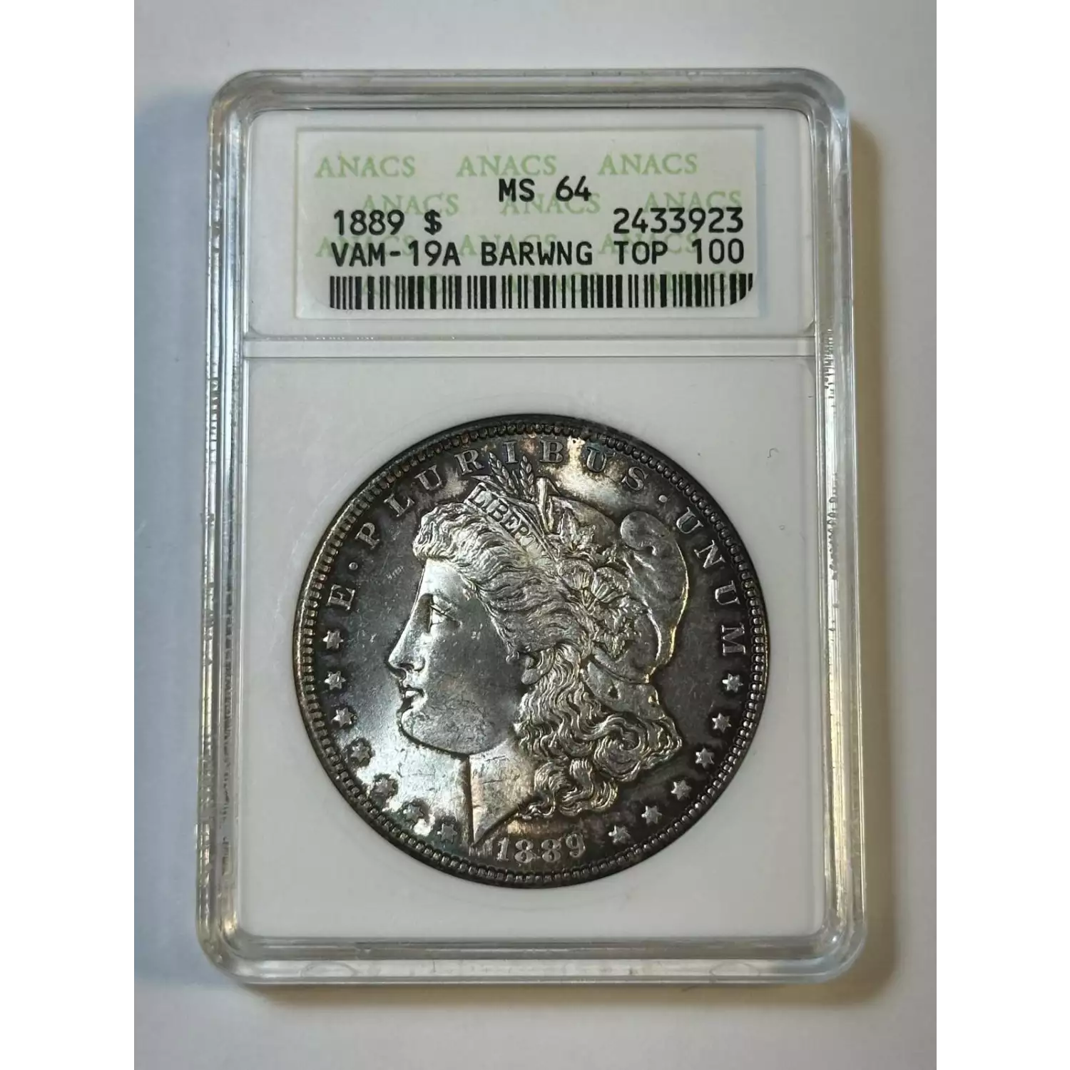 1889 Morgan Silver Dollar ANACS MS-64 BAR WING VAM 19-A