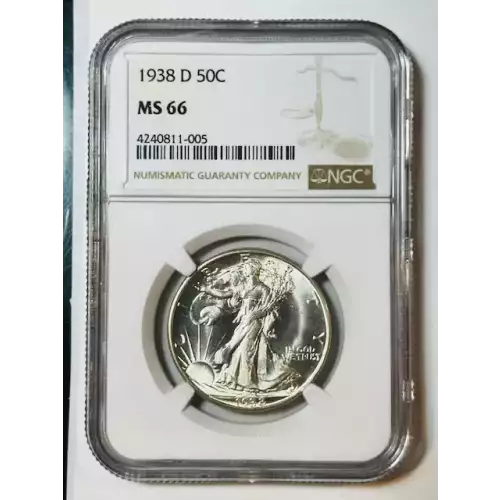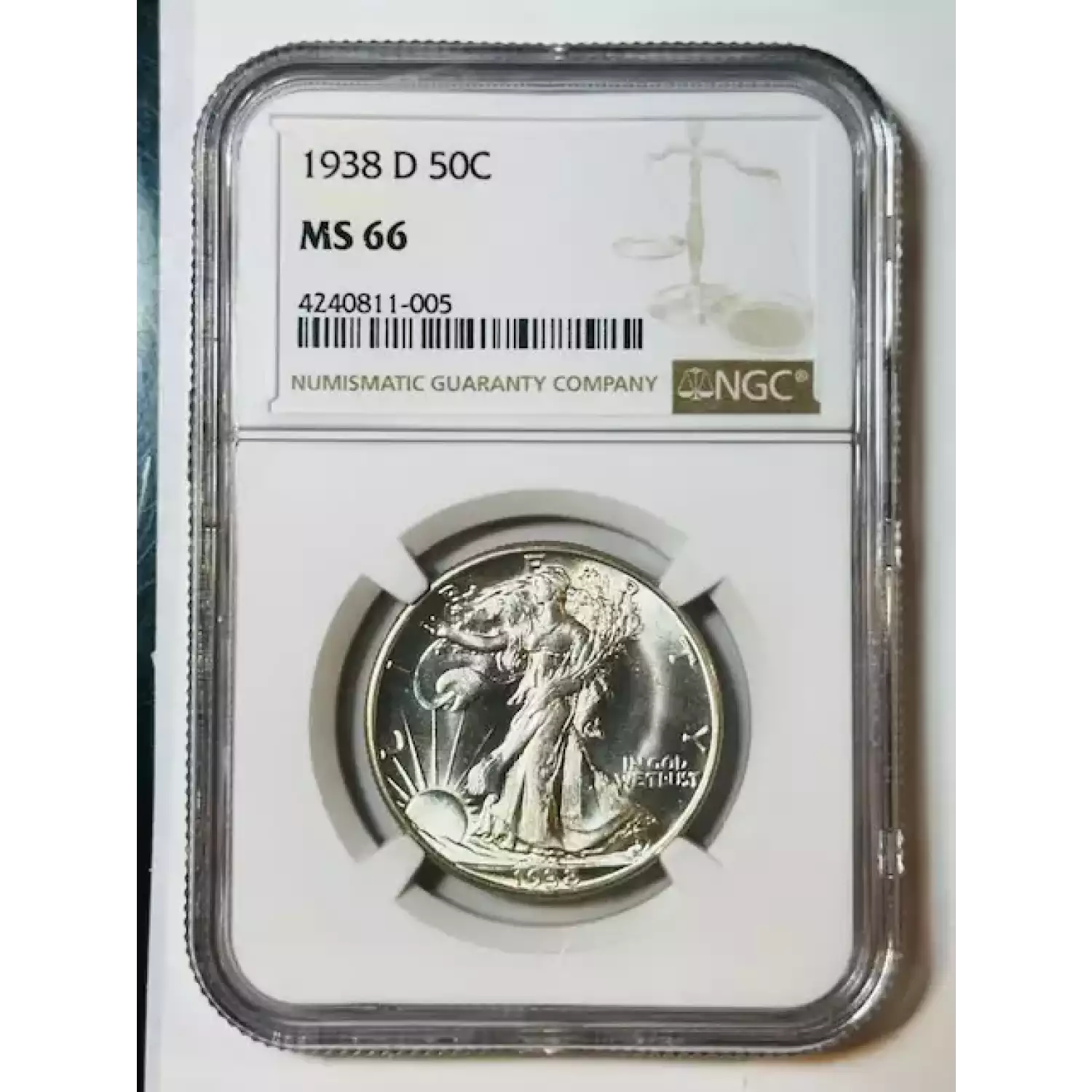 1938-D Walking Liberty Half Dollar NGC MS-66 White Original Coin