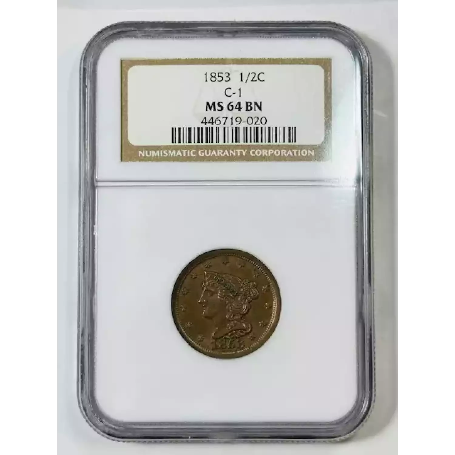 1853 Half Cents Braided Hair NGC MS-64 BN C-1