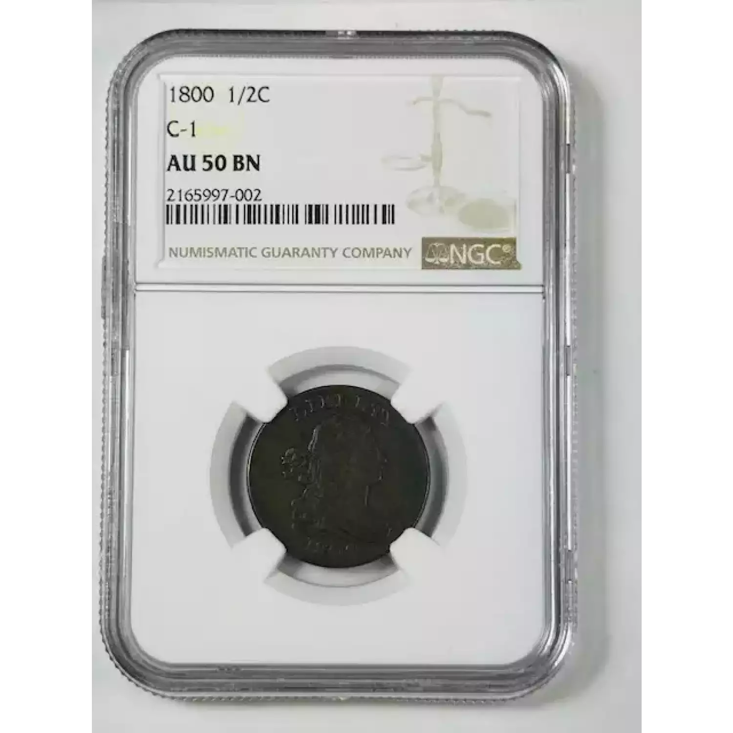 1800 Half Cents Draped Bust 1800 - 08 Copper NGC AU-50 BN C-1