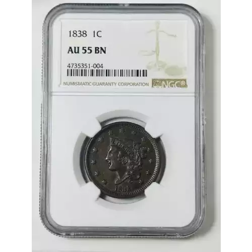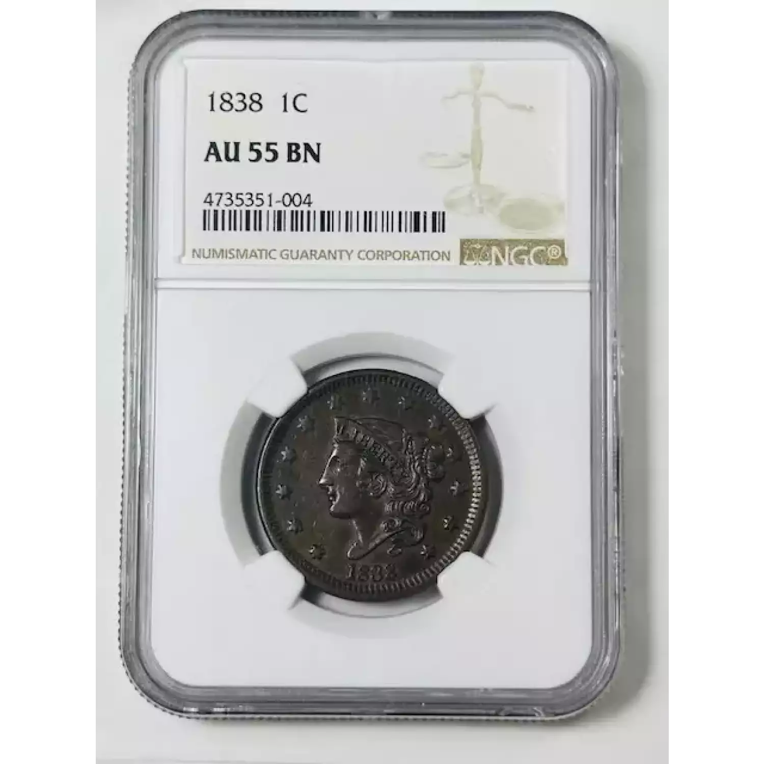 1838 Large Cents Coronet Head NGC AU-55 BN
