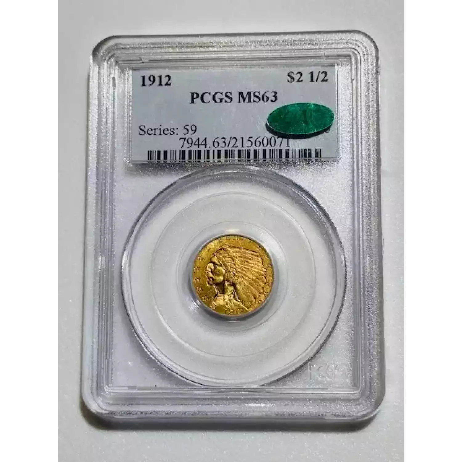 1912 Gold Quarter Eagles $2 1/2 Indian Head PCGS MS-63 CAC