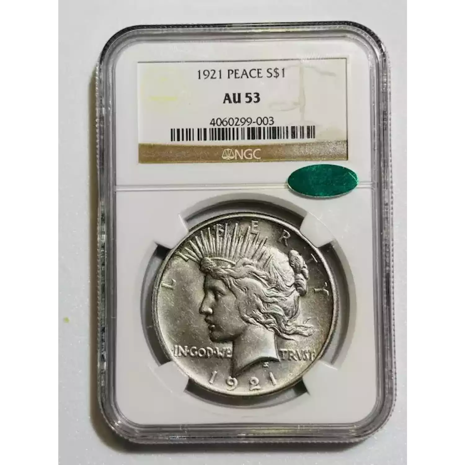 1921 Peace Dollar NGC AU-53 HIGH RELIEF CAC