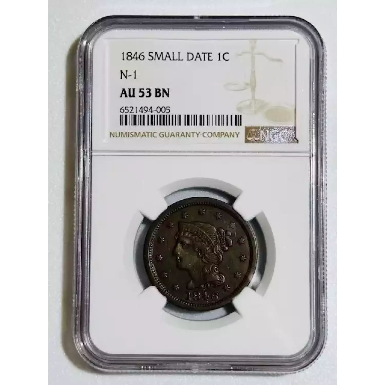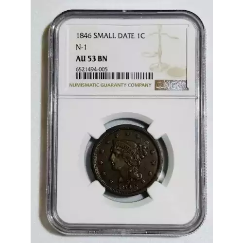 1846 Braided Hair Cent NGC AU-53 BN N-1